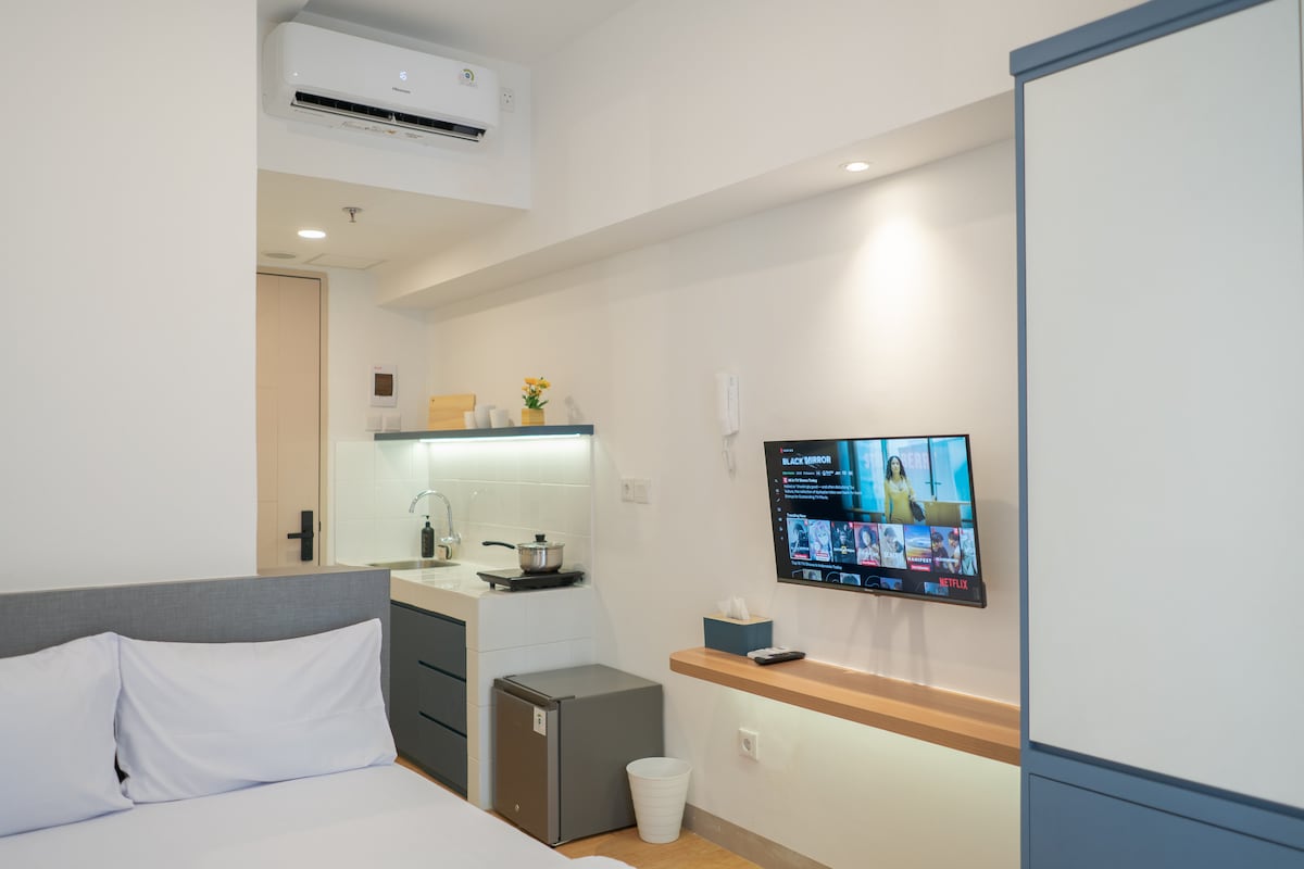 Disfruta de una estancia relajante en nuestro resort de estudios. ¡Perfecto para viajeros solitarios o parejas! A poca distancia de restaurantes cercanos. Acceso directo a Indomaret, Hermina Hospital y fácil tránsito a las atracciones cercanas de PIK (IDD, Dragon Point, Aloha, Land 's end, etc.) La limpieza y la comodidad son nuestras prioridades. El espacio cuenta con Netflix-TV 4K, microondas, aire acondicionado y agua caliente. Proporcionamos toallas limpias, jabón y champú. Aceptamos estancias más largas (semanales o mensuales) a una tarifa especial, ¡envíanos tu consulta!
