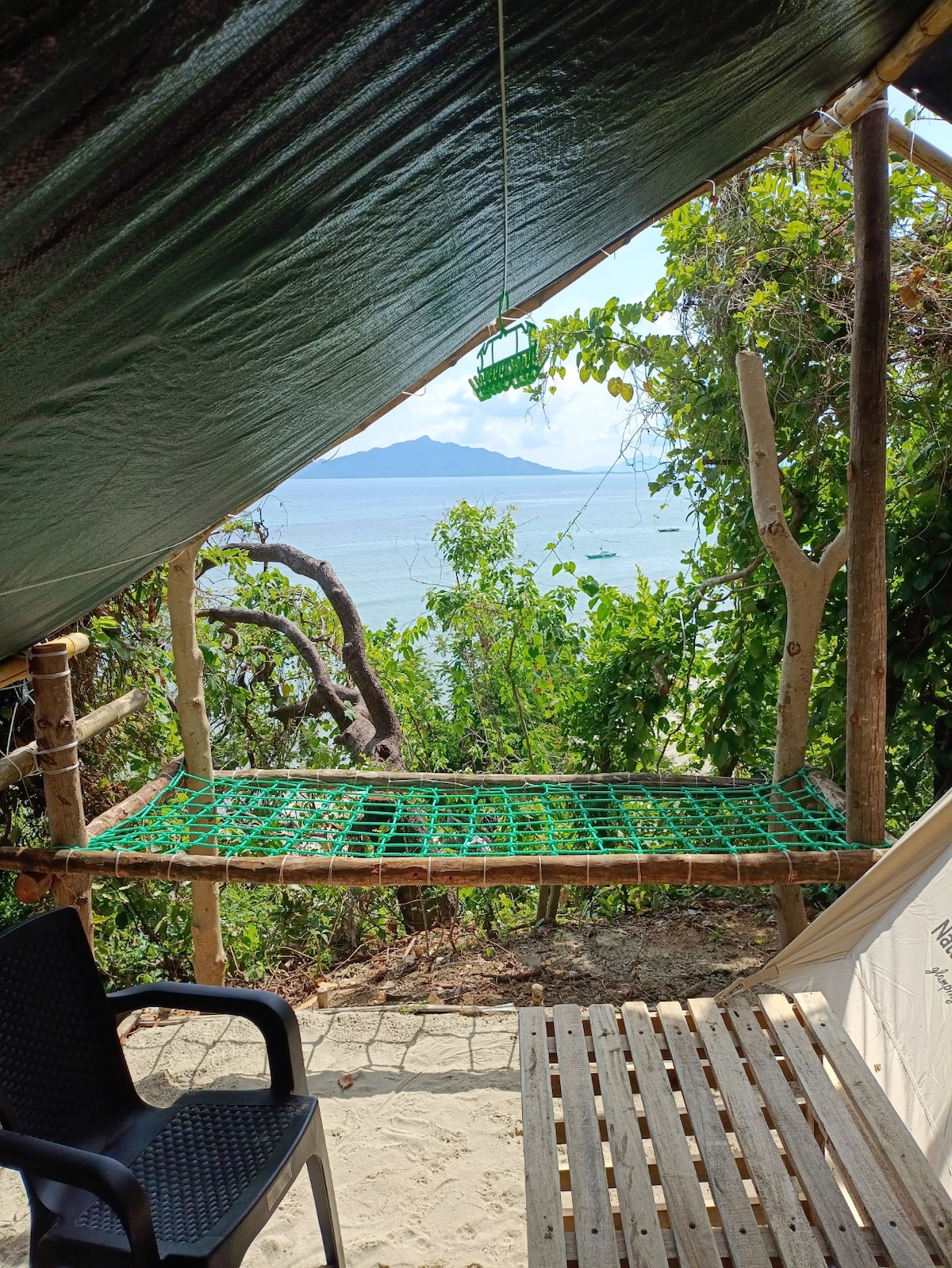 Get away from it all in our ocean-view tent at Kamp Tapik, designed for simple island living. Fall asleep under the stars, wake to sea breezes, and enjoy peaceful beach views from an elevated spot just steps from the shore. Tucked among lush trees, the eco-style tent includes electricity, seating, a net hammock, and a chest locker—perfect for travelers seeking a quiet, back-to-nature escape.