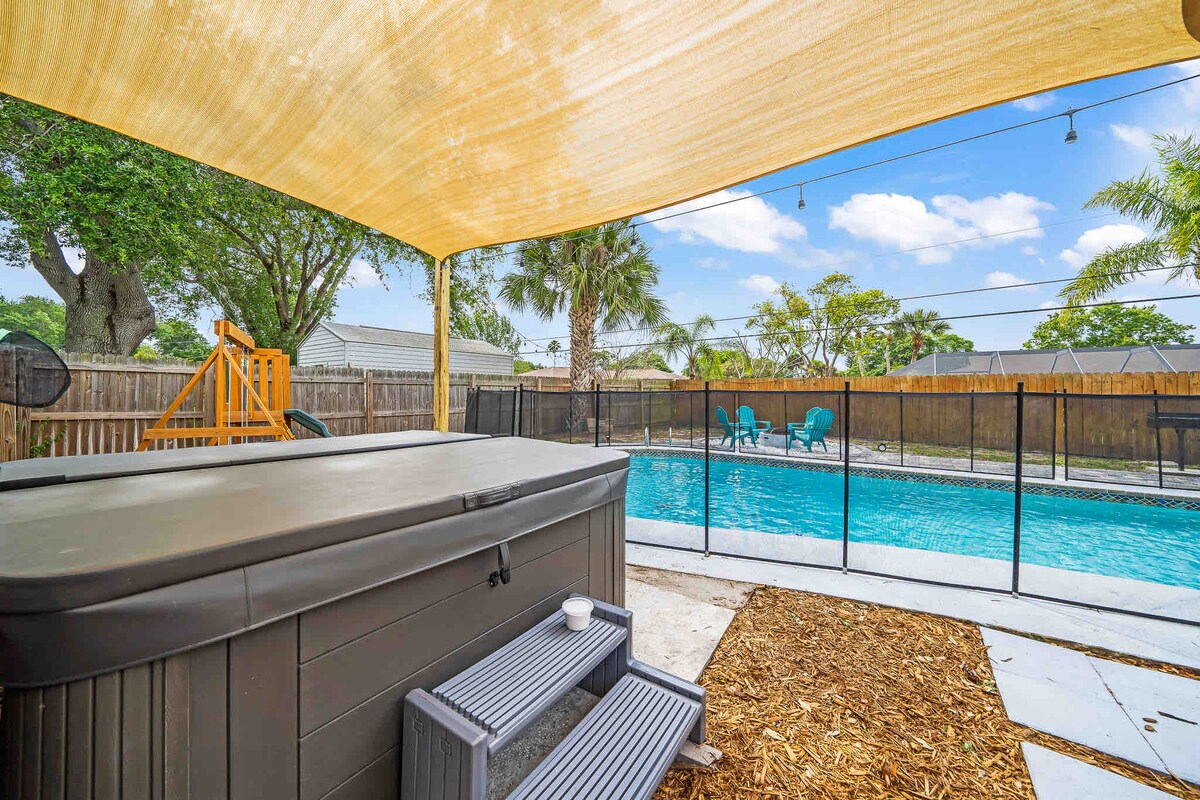 ¡Te damos la bienvenida a la escapada de Namaste! • Piscina climatizada (configurada a 85° en invierno) • Patio privado completamente cercado • Cocina actualizada (todos los servicios) • 1600 pies cuadrados, un solo piso • Aparcamiento para 4 vehículos. • Barrio extremadamente seguro • Plancha Blackstone • Lavadora/Secadora. • Apto para bebés y niños • Se admiten mascotas. - Espacio de trabajo exclusivo • videojuegos proporcionados • A 17 minutos de la playa. • A 10 minutos del centro de Melbourne • A 6 minutos de Florida Tech (FIT) ¡Envíanos un mensaje para obtener descuentos y promociones de temporada!