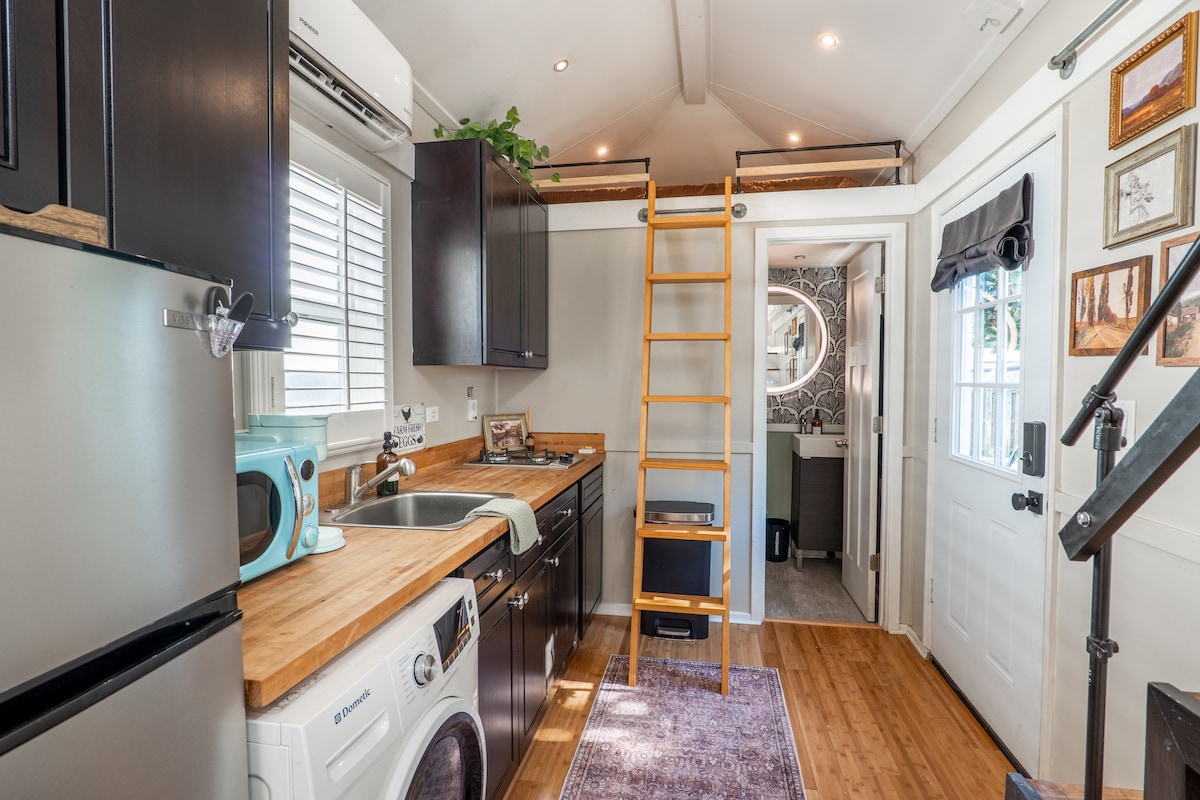 Relax in our cozy tiny home, just 3 miles from the beach! Nestled by historic downtown Eau Gallie Arts District - You'll love this unique and romantic "tiny" getaway. This home features a full kitchen supply with a gas stove, pots and pans.. the whole nine yards. With enough space for 3 guests, there are two lofts (1 queen, 1 loft bed for a small kid, and a nook with a pull out (twin) sectional and small dining counter. The outdoor space has a picnic table, fire-pit and chickens!