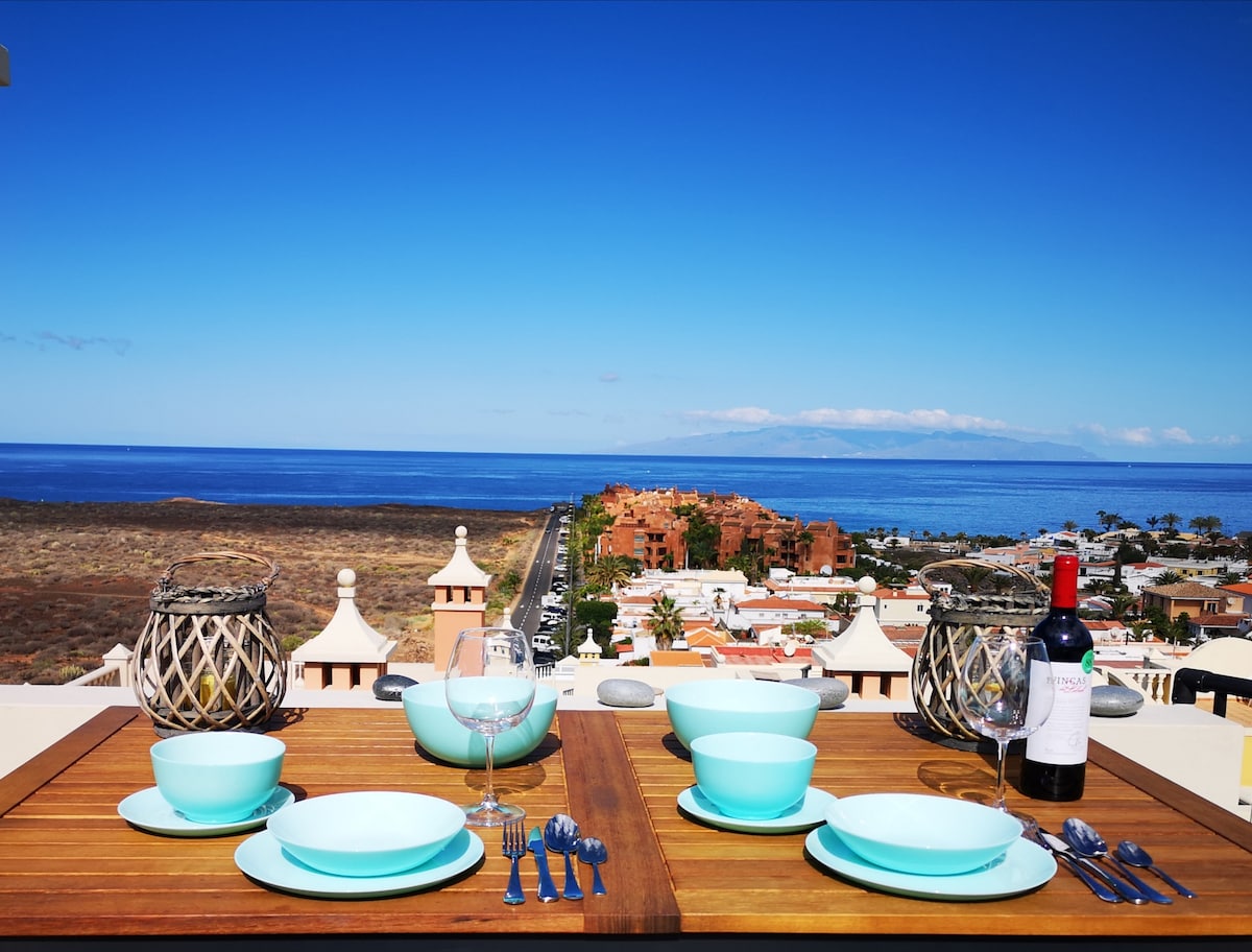 A 5 minutos a pie de la playa, nuestro hermoso apartamento dúplex con vistas al mar de 187 m² incluye un jardín privado de 70 m² con jacuzzi y tumbonas, una terraza de 30 m ² con impresionantes vistas al mar, una gran piscina residencial, una amplia sala de estar con TV de 65pulgadas, una cocina totalmente equipada, 2 dormitorios, 1 baño, 2 baños y un estacionamiento interior gratuito justo al lado del apartamento. Justo al lado de una reserva natural y restaurantes locales, te encantará nuestra ubicación privilegiada en un pueblo tranquilo ubicado en el sur de Tenerife.