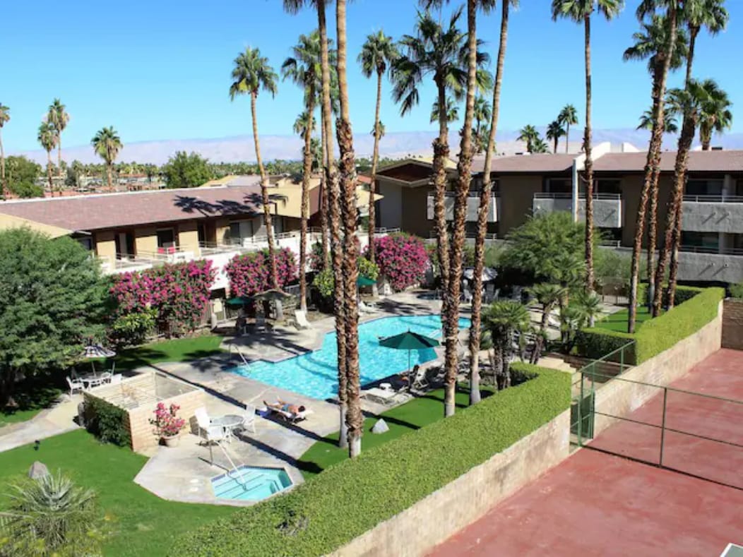 Estamos ubicados en la ciudad desértica de Palm Springs, un oasis en el desierto situado a los pies de las montañas de San Jacinto, cerca del aeropuerto de Palm Springs y a poca distancia del centro de la ciudad y del centro de convenciones. No hay ascensor en la propiedad. Las unidades de la planta baja están sujetas a disponibilidad y no están garantizadas. Se incluye una tarifa del centro vacacional de 29,00 $ por noche en el precio total que se muestra en Airbnb. Esta tarifa cubre el aparcamiento, el wifi y el acceso a los servicios del hotel.