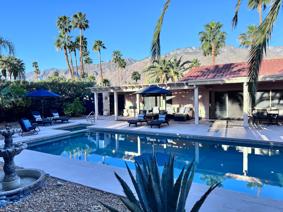 Ven a disfrutar del verdadero Palm Springs en esta casa de 2000 pies cuadrados (con una habitación adicional) con 5 dormitorios y 3 baños, bellamente decorada y muy privada. Piscina a estrenar con spa incorporado y zona de bronceado, cascada, zona de estar junto a la chimenea... ¡y mucho más! También acabamos de terminar de renovar gran parte del interior, ¡incluidos dos baños nuevos! A menos de tres minutos en coche del centro de Palm Springs. ¡Lee las normas de la casa antes de reservar! Queremos asegurarnos de que es adecuado.