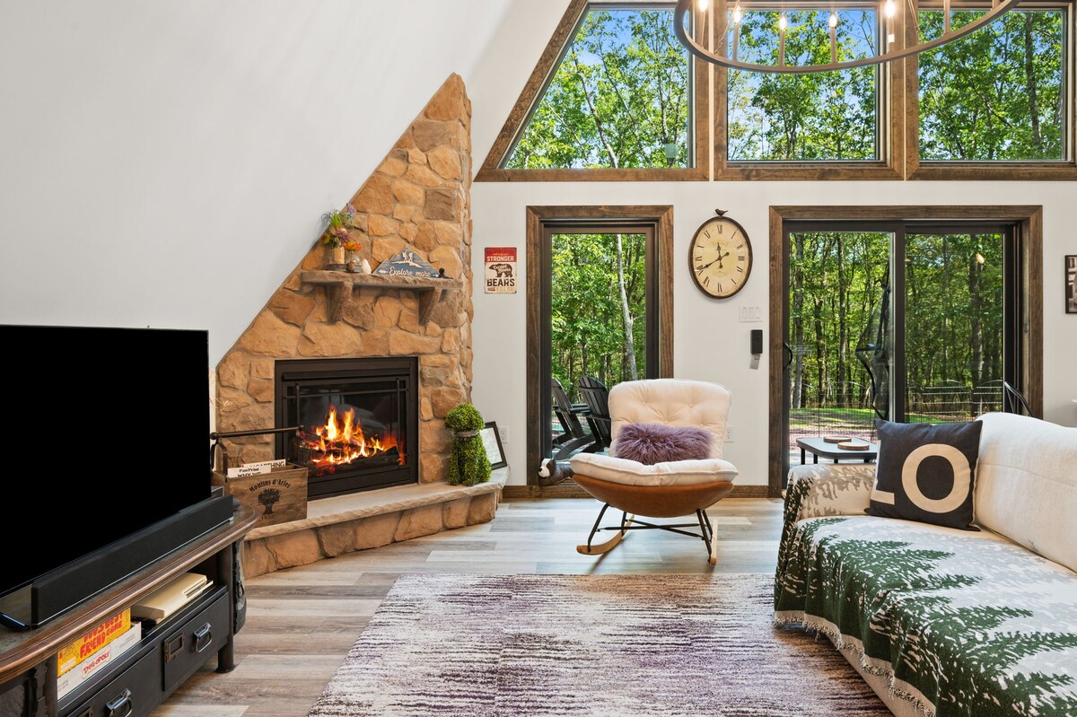 ¡La temporada de esquí/tubing está a la vuelta de la esquina! Escápate al "Eclipse", una moderna cabaña de inspiración escandinava ubicada en .5 acres con vistas a un sinfín de bosques. El Eclipse ofrece servicios cuidados, como una llamativa chimenea de gas, una divertida consola de arcade, golf de disco, etiqueta láser y un delicioso carrito de palomitas para las noches de cine. Relájate en el jacuzzi bajo las estrellas o disfruta del encanto en forma de A iluminado con LED. En 'Eclipse', todas las estrellas se alinean para una estancia verdaderamente mágica.