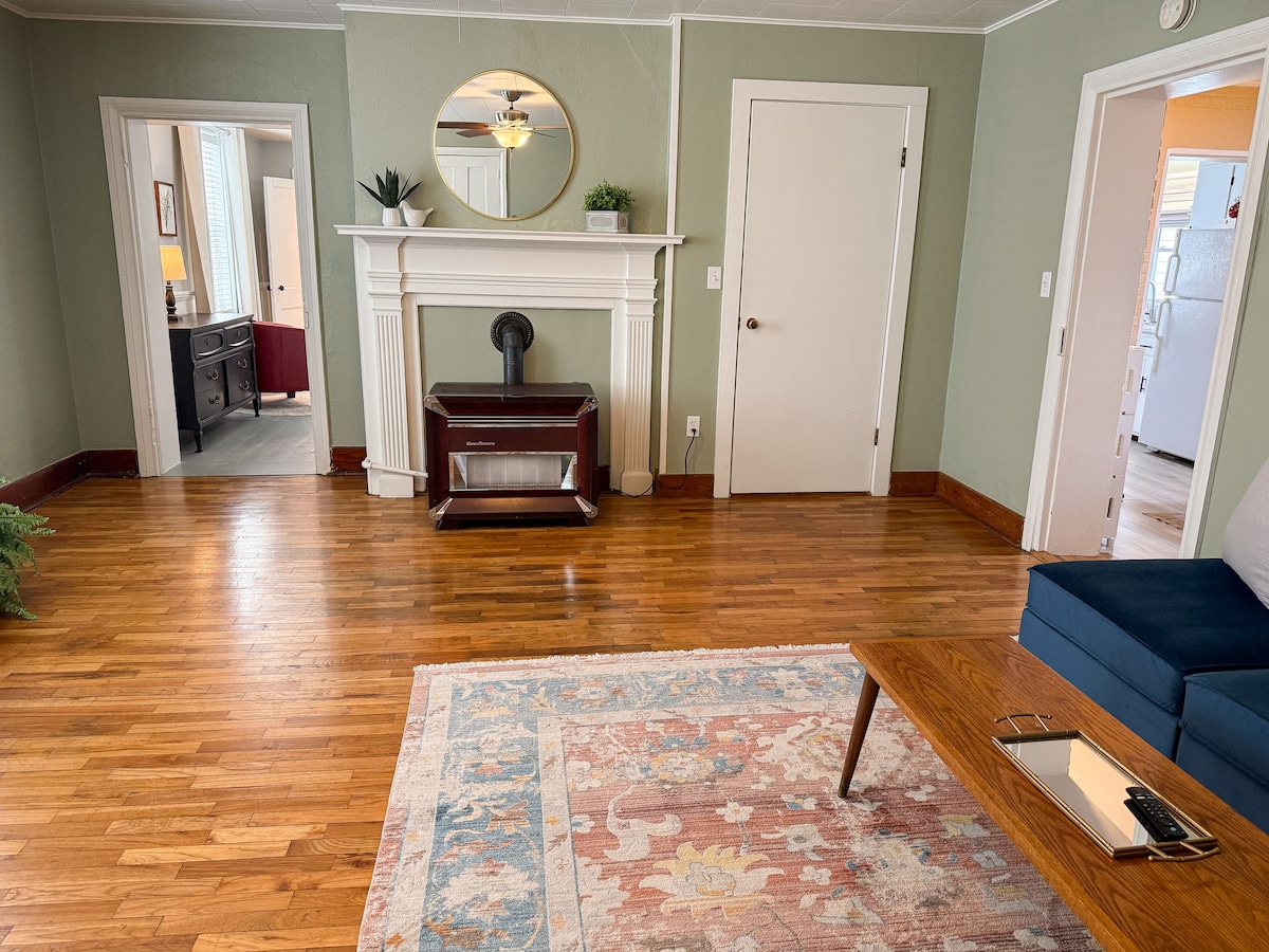 Welcome to our Spacious King Suite, a thoughtfully designed, private retreat perfect for couples, solo travelers, or extended stays. This beautifully styled suite combines historic charm with modern comfort — featuring a luxurious king bed, cozy fireplace, full kitchen, and inviting living area. Whether you’re visiting for a weekend getaway or settling in for a longer stay, this space is designed to feel calm, comfortable, and effortlessly livable.