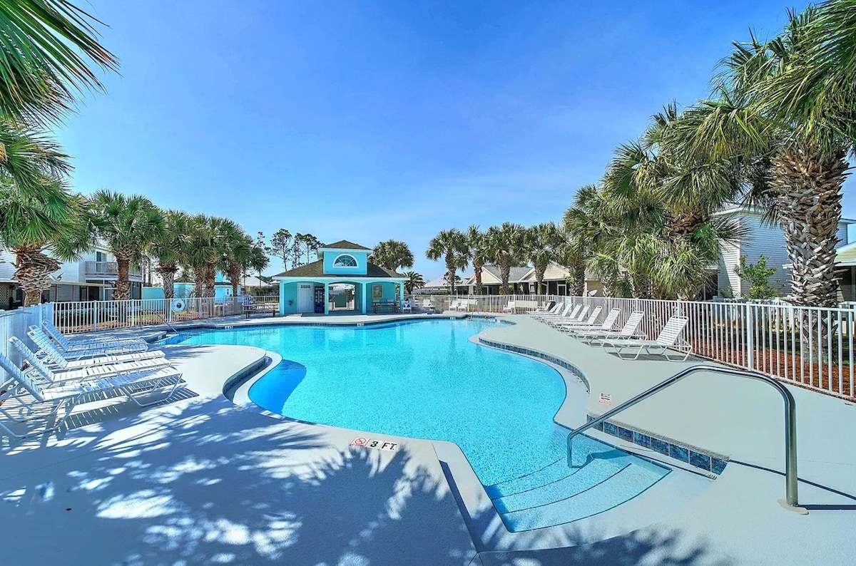 🏊¡Viva el sueño de la cabaña de surf! Este elegante refugio de playa de 3 habitaciones y 2 baños tiene capacidad para 9 personas y se encuentra a solo 4 minutos de la playa más hermosa de PCB. Relájese en la terraza tiki, ase s’mores junto a la fogata o dese un chapuzón en las dos resplandecientes piscinas (de marzo a octubre). Juegue minigolf en el patio trasero, rete a sus amigos a juegos de arcade clásicos o relájese en camas lujosas con calidad de hotel. ¿Por qué ni siquiera salir de la casa? Cerca de los mejores restaurantes y tiendas, pero en una tranquila comunidad cerrada, ¡le espera la escapada familiar a la playa definitiva!
