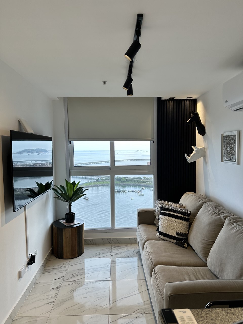Moderno apartamento de lujo en la Cinta Costera, ideal para ejecutivos, parejas o familias. Dormitorio amplio con vista al mar, baño privado, cocina y electrodomésticos. Diseño elegante con seguridad 24/7, gimnasio, piscinas, 4 restaurantes, bar y Sky Lounge. Ubicación privilegiada cerca de supermercados y excelente oferta gastronómica en Ciudad de Panamá. PANAMA