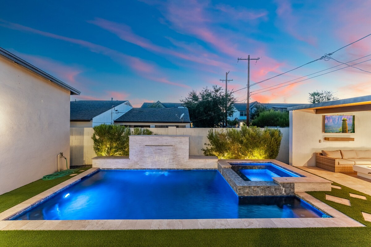The Owner Hosts presenta «Las cinco estaciones de Scottsdale». Descubre el lujo en esta impresionante villa de Scottsdale con 4 BR, 3 baños y 8 camas, con capacidad para 12 huéspedes. Disfruta de una piscina climatizada, perfecta para relajarse y entretenerse. Situada cerca de rutas de senderismo, el Biltmore, Kierland Commons y el casco antiguo, esta villa es ideal para grupos, incluidas despedidas de soltera. Damos prioridad a la experiencia de los huéspedes para garantizar una estadía inolvidable.