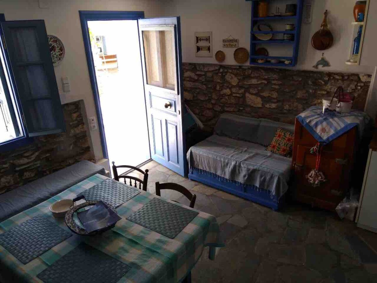 Una casa tradicional de 67 m2 en tres plantas, para una familia con 3 niños (en realidad 8 camas), con todas las instalaciones (es decir, refrigerador, cocina, dos baños) en la tradicional Chora de Kythnos en el centro del pueblo. Pequeño balcón con gran vista. No hay estacionamiento gratuito en el lugar, pero hay estacionamiento municipal gratuito a 200 metros de la casa. La casa es un poco antigua y es posible que algunos dispositivos no estén disponibles. No se puede proporcionar compensación si el alojamiento no cumple con sus expectativas.