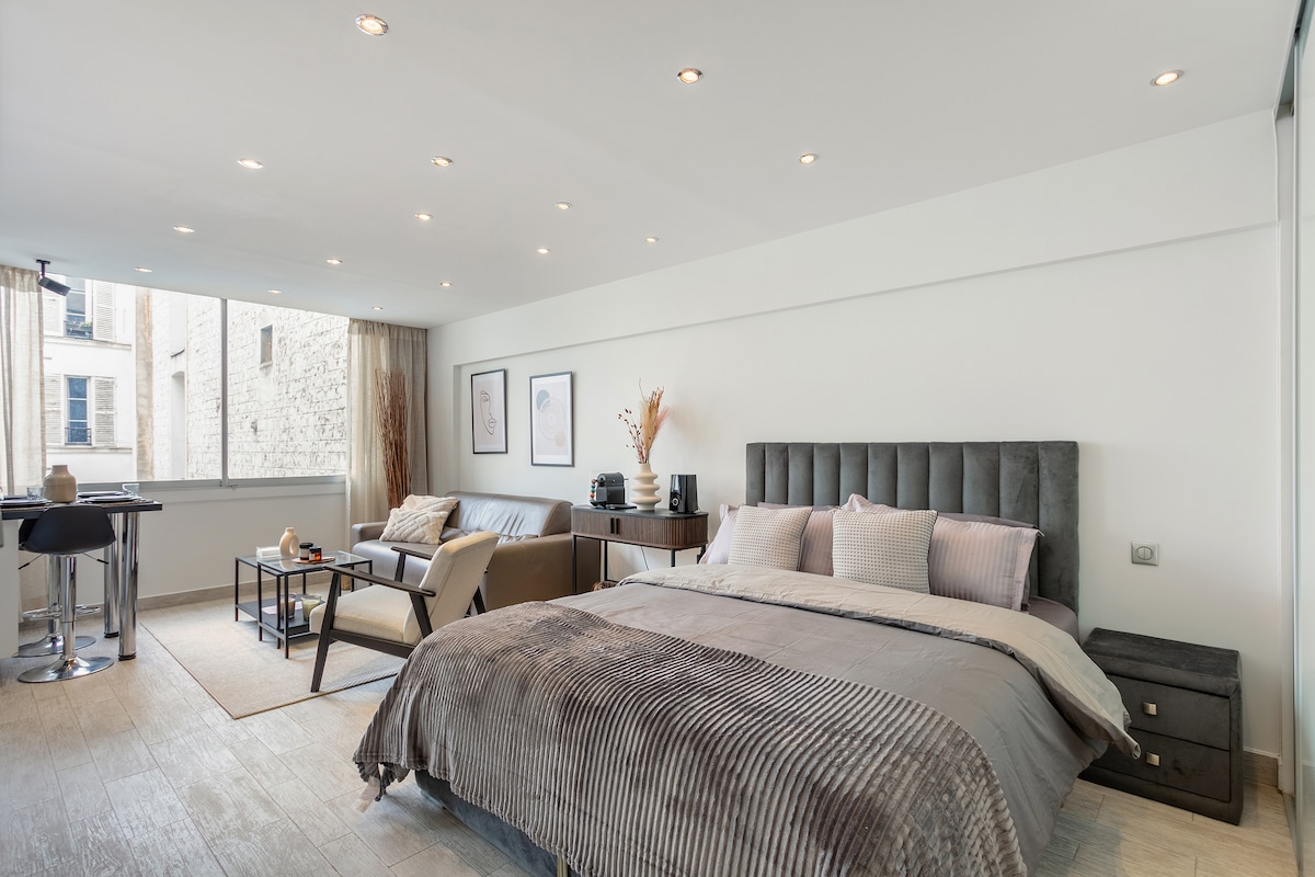 Te damos la bienvenida a tu escapada parisina Alójate en el elegante distrito 8, cerca de la Gare Saint-Lazare, la Ópera Garnier y los Campos Elíseos. Estudio luminoso con una cómoda cama tamaño queen y un sofá cama doble, cocina, wifi y entrada privada. Cerca de los mejores lugares de interés: Musée de l'Orangerie, Arco de Triunfo, Jardín de las Tullerías. Ideal para viajes de negocios, parejas o estancias solas. No fumadores.