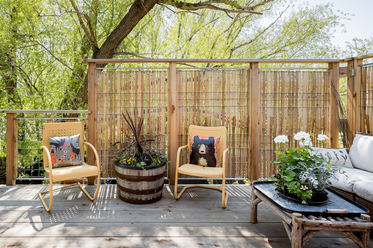 En relación con el brote de COVID-19: Estamos tomando precauciones adicionales al limpiar y desinfectar la propiedad. Esto incluye un mayor lavado de manos por parte de los empleados y la desinfección de las superficies de uso común en el baño, la cocina y los dormitorios con desinfectante registrado por la EPA. Las telas de alto uso se rociarán con Lysol. Se hará especial hincapié en la desinfección de pomos y manijas. Las sábanas se lavan con un ciclo de «desinfección». Hay purificadores de aire con desinfectantes UV-C en los dormitorios que ayudarán a matar posibles partículas virales en el aire. Por favor, mantén estos purificadores funcionando en todo momento. El objetivo de estas medidas es reducir el riesgo. Cuando el clima te atraiga afuera, sal a la terraza y contempla unas vistas impresionantes de las montañas Absaroke. La terraza está enclavada en un grupo de álamos y tiene la sensación de una casa del árbol. La casa ofrece acceso rápido al río Yellowstone (a menos de 2 minutos en coche) y al corazón del encantador centro de la ciudad de Livignston. ¡A 4 minutos en coche llegarás al sendero Myer's River View, de una milla de largo, que ofrece unas vistas impresionantes y observación de aves! A 4 minutos en coche en dirección opuesta se encuentra el encantador parque Sacajawea. El edificio cuenta con una cerradura inteligente y otras tecnologías inteligentes que permitirán a los huéspedes ir y venir sin ayuda. Estoy más que dispuesto a ofrecer orientación adicional a través de mensajes de texto, llamadas telefónicas o una visita rápida cuando sea necesario. Vivo al lado, en la casa adyacente. La casa está a poca distancia en coche del encantador centro de la ciudad de Livingston, el parque Sacajawea, el río Yellowstone y el sendero Myer's River View Trail con sus impresionantes paisajes y aves. Descubre un parque acuático de verano, recintos feriales y un campo de golf cerca. La bañera de hidromasaje tiene capacidad para 3 adultos, aunque 4 personas que se conozcan bien podrían meterse en la bañera. Hay zonas de estar al aire libre y una mesa de comedor al aire libre.