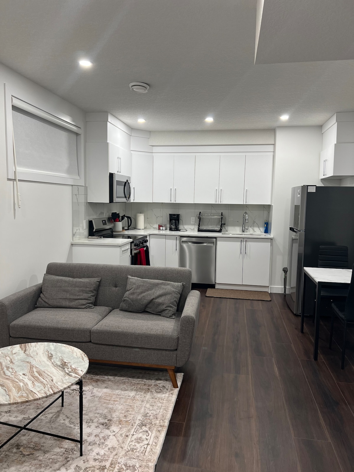 Bienvenido a nuestra acogedora y totalmente amueblada suite de dos dormitorios, convenientemente ubicada a solo 12 minutos en auto del emblemático West Edmonton Mall. Ubicado en un barrio sereno, nuestro espacio ofrece una combinación perfecta de comodidad y conveniencia, ideal tanto para estadías cortas como para escapadas prolongadas. Disfruta de un entorno acogedor con todos los servicios que necesitas para una estancia relajante. Explora las atracciones locales o relájate en su refugio privado y tranquilo. Reserva ahora para disfrutar de una experiencia inolvidable en Edmonton