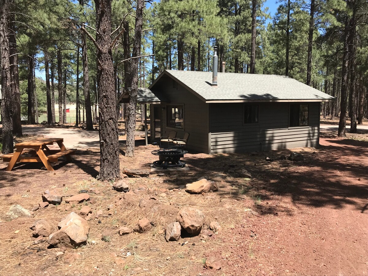 Escapa a la serenidad en esta encantadora cabaña de 2 dormitorios y 1 baño escondida en 2,25 acres privados, bordeada por el Bosque Nacional Kaibab en 2 lados. Esta cabaña te ofrece lo mejor de ambos mundos: ambiente de bosque salvaje + todas las comodidades que realmente deseas. Ven por las estrellas, quédate por la paz y la tranquilidad (y tal vez por los alces). Aunque parece que estás a kilómetros de la civilización, estás a solo 25 minutos en coche de Flagstaff o Williams, lo suficientemente cerca como para hacer excursiones de un día, pero lo suficientemente lejos como para relajarte de verdad.