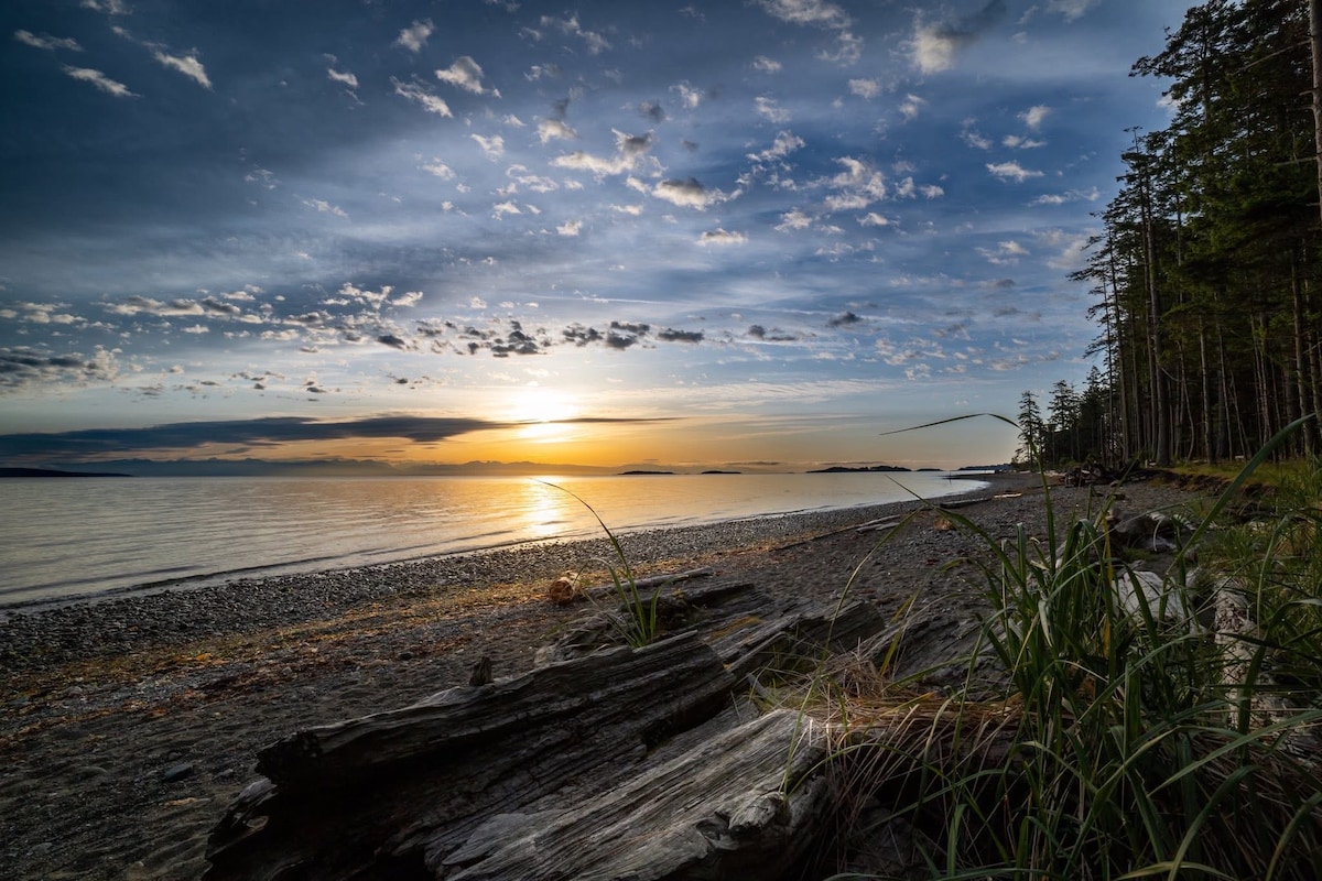 **Alquiler mensual disponible para temporada baja (octubre-abril) con tarifa con descuento** Visita la mundialmente famosa playa de Rathtrevor. Vistas increíbles, playa espectacular. Disfruta de tu café observando las mareas frente a la chimenea. Oceanview Haven es una casa adosada de lujo con temática de playa a pocos pasos de la impresionante playa de Rathtrevor. A solo 5 minutos del centro de Parksville y a 20 minutos de Nanaimo, es la escapada perfecta. Licencia comercial del Ayuntamiento de Parksville n.º 00005223
