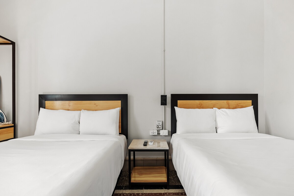 Una casa privada contemporánea con un toque de encanto antiguo en una calle tranquila y a poca distancia del Paseo de Montejo y la Plaza Mayor. Hay muchos filtros de luz natural en toda la casa a través de tragaluces ocultos en el techo. Las habitaciones tienen ventiladores de techo y unidades de pared de aire acondicionado, muchas ventilaciones de aire y puertas de ventanas de pantalla.