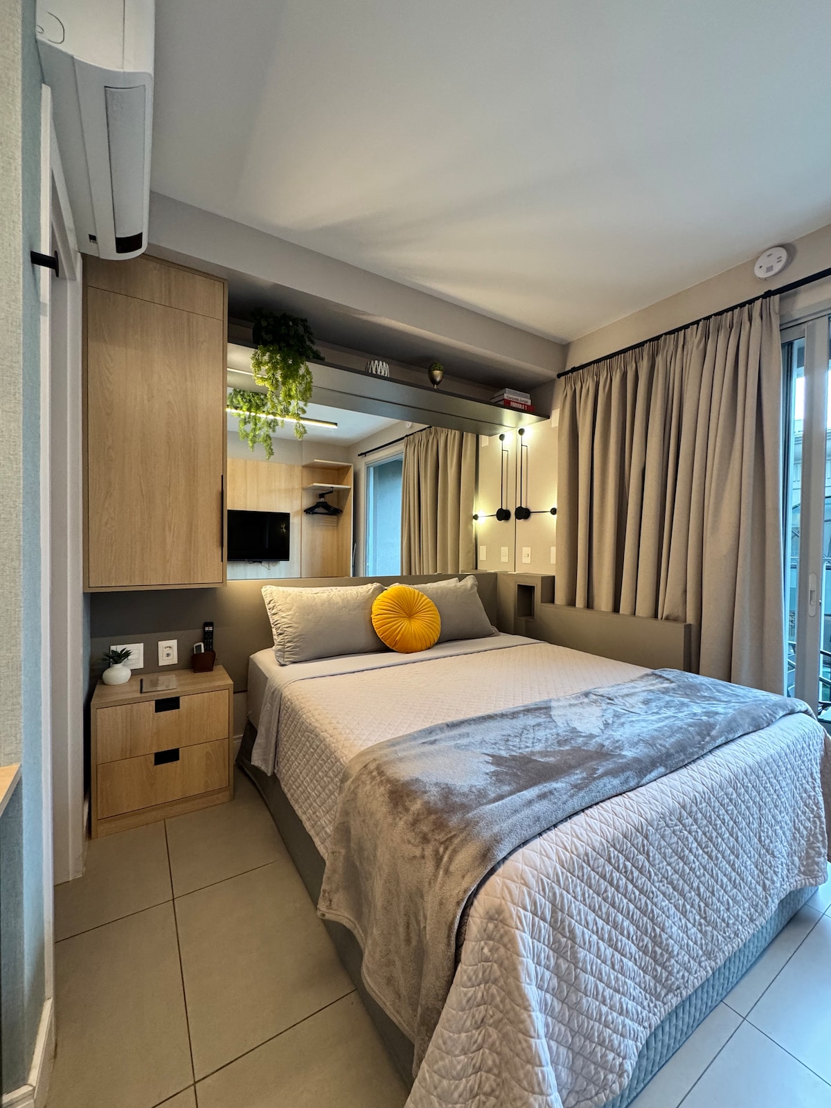 We renovated NYC BERRINI following the success of our One Eleven apartment, Vila Olímpia. Modern duplex on R. Sansão Alves dos Santos, 56, 13th, with a great view of the Pinheiros River. Ideal for those seeking comfort in São Paulo. Guests rate the experience above average! Amenities: Queen bed, sofa bed, 55" Smart TV with Alexa, 500 Mbps Wi-Fi, air conditioning, closets, 2 minibars, Illy coffee machine, and daily housekeeping. Includes pool, sauna, and is near restaurants, shops, and transport.