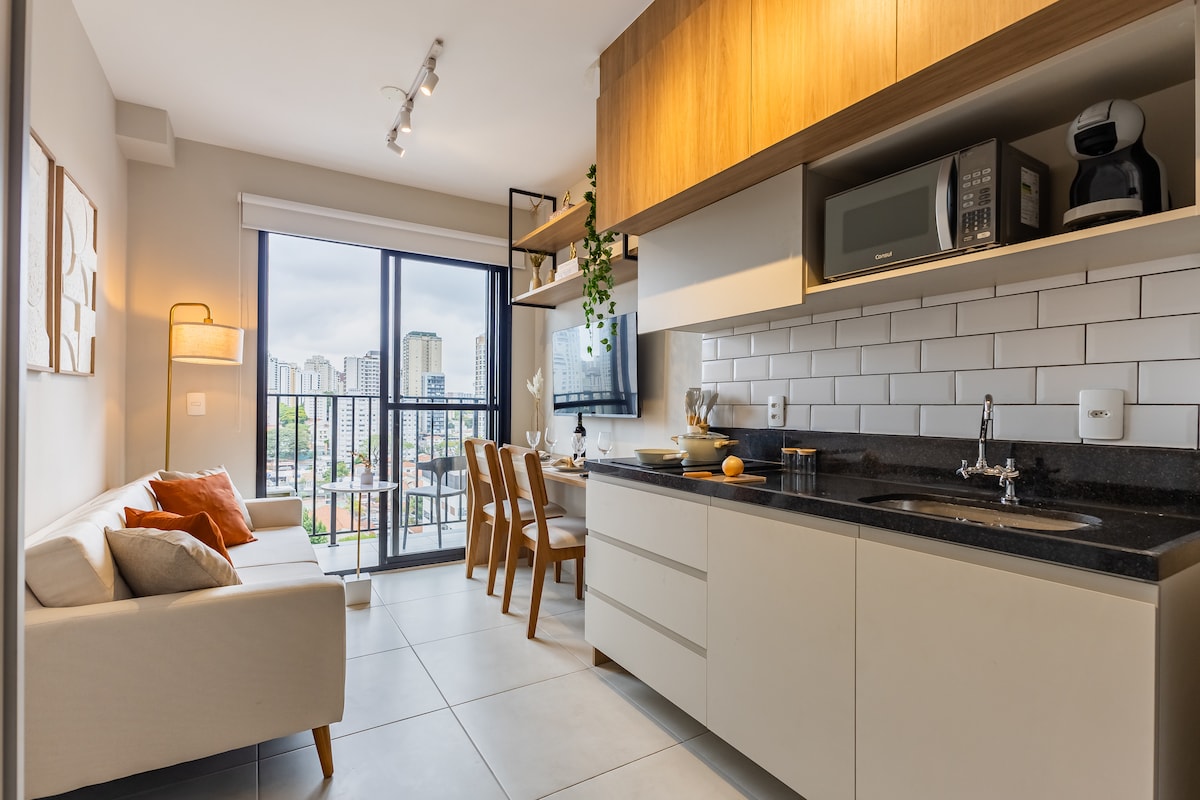 Nuevo estudio de 27 m² con balcón en Vila Olímpia, con wifi, TV, minibar, cocina y microondas. Excelente ubicación: Rua Casa do Ator, cerca de restaurantes, cafeterías, mercados y transporte público. Ideal para quienes vienen por trabajo o por placer, con fácil acceso a las principales avenidas, centros comerciales y centros de negocios. Comodidad, practicidad y comodidad en un solo lugar. Fácil acceso a avenidas importantes, lo que facilita los desplazamientos al trabajo, las reuniones o los recorridos por la ciudad.