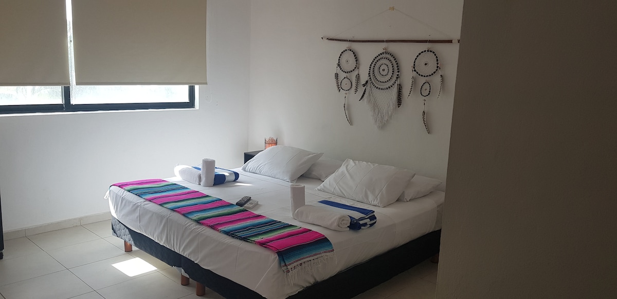Estudio moderno en el corazón de Cancún, ¡totalmente equipado con increíbles comodidades! Disfruta de una estancia excepcional en este acogedor estudio ubicado en el centro de Cancún, perfecto para viajeros que buscan comodidad, estilo y una ubicación privilegiada. Este espacio se diseñó cuidadosamente para que te sientas como en casa, ya sea que estés de visita por trabajo, vacaciones o una escapada rápida.