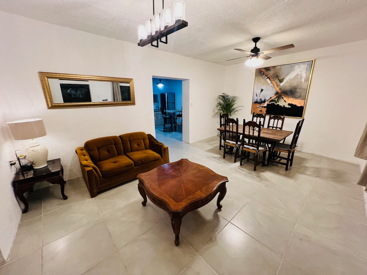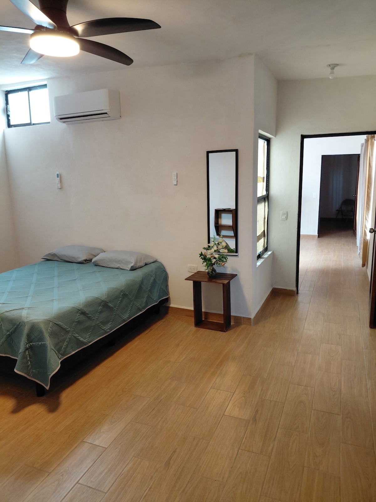 Linda casa de tres recamaras climatizadas con camas king y baño completo cada habitación. Estacionamiento techado con portón para dos vehículos, palapa, Terraza techada, asador, mesa, sillas, sala de jardín, pequeña alberca y jardín. Cocina equipada con estufa, horno, microondas, refrigerador, vajilla, cuchillería, vasos y copas, un comedor y una acogedora salita para disfrutar de una TV de 60” con conexión a internet y con servicio de Netflix. Todas las áreas con abanico de techo