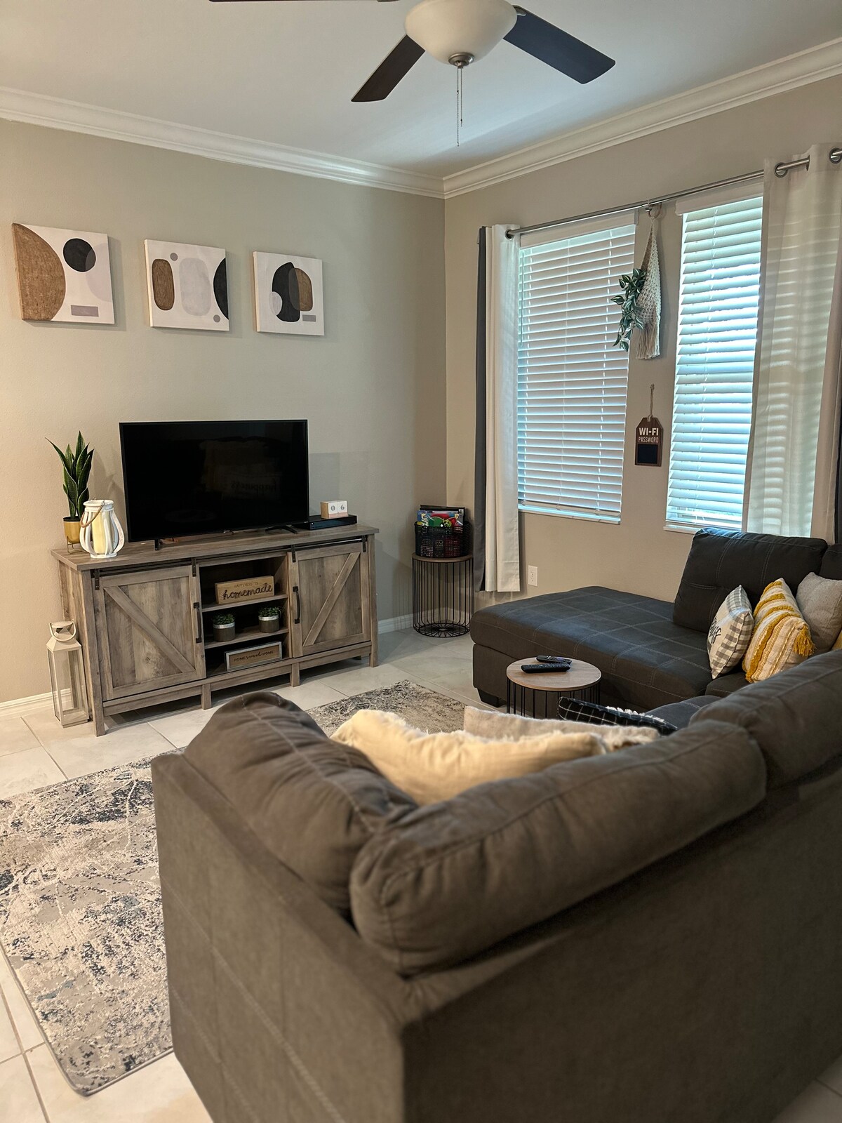 La casa entera es tuya para que la disfrutes. Tienes muchos restaurantes a tu alrededor para elegir, ya que estás justo al lado del centro comercial premium. Acceso rápido a la autopista y a poca distancia en coche de las lagunas de cristal. ¡Este anfitrión recibirá tu primera entrada a la laguna de cortesía! De viernes a domingo. Esta casa adosada tiene tres dormitorios, dos baños y medio, una cocina de tamaño completo con todas las ollas, sartenes, platos, etc., necesitas cocinar y alimentar a una familia de seis personas. También tienes un garaje para un auto y una entrada.