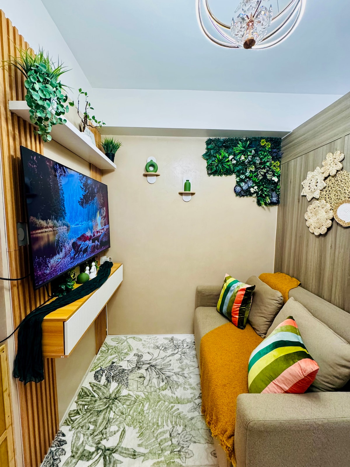 Un acogedor y moderno refugio escandinavo/tropical enclavado en el corazón de la ciudad. Este es un lugar donde puedes relajarte, descansar y divertirte con tus seres queridos o simplemente por tu cuenta. La sala de estar está adornada con suelos de madera de colores claros, lo que proporciona un ambiente cálido y acogedor. Amueblado con muebles escandinavos/tropicales sencillos pero elegantes. La cocina es totalmente funcional. Equipada con todas tus necesidades culinarias. El diseño minimalista del dormitorio seguramente te dará una noche de sueño reparador.