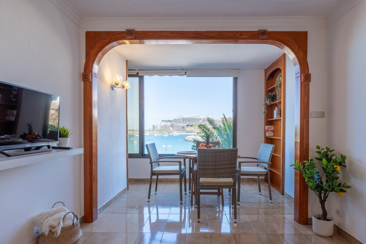 Wake up to stunning ocean views and enjoy breakfast on your private terrace overlooking the harbour of Arguineguín. This stylish boho apartment, fully renovated in 2022, offers modern comfort in a peaceful setting. Perfect for couples and sun escapes. Close to beaches, restaurants and cafés, with fast Wi-Fi and access to a shared pool. Relax, work remotely or explore Gran Canaria’s sunny south coast from this charming seaside retreat.