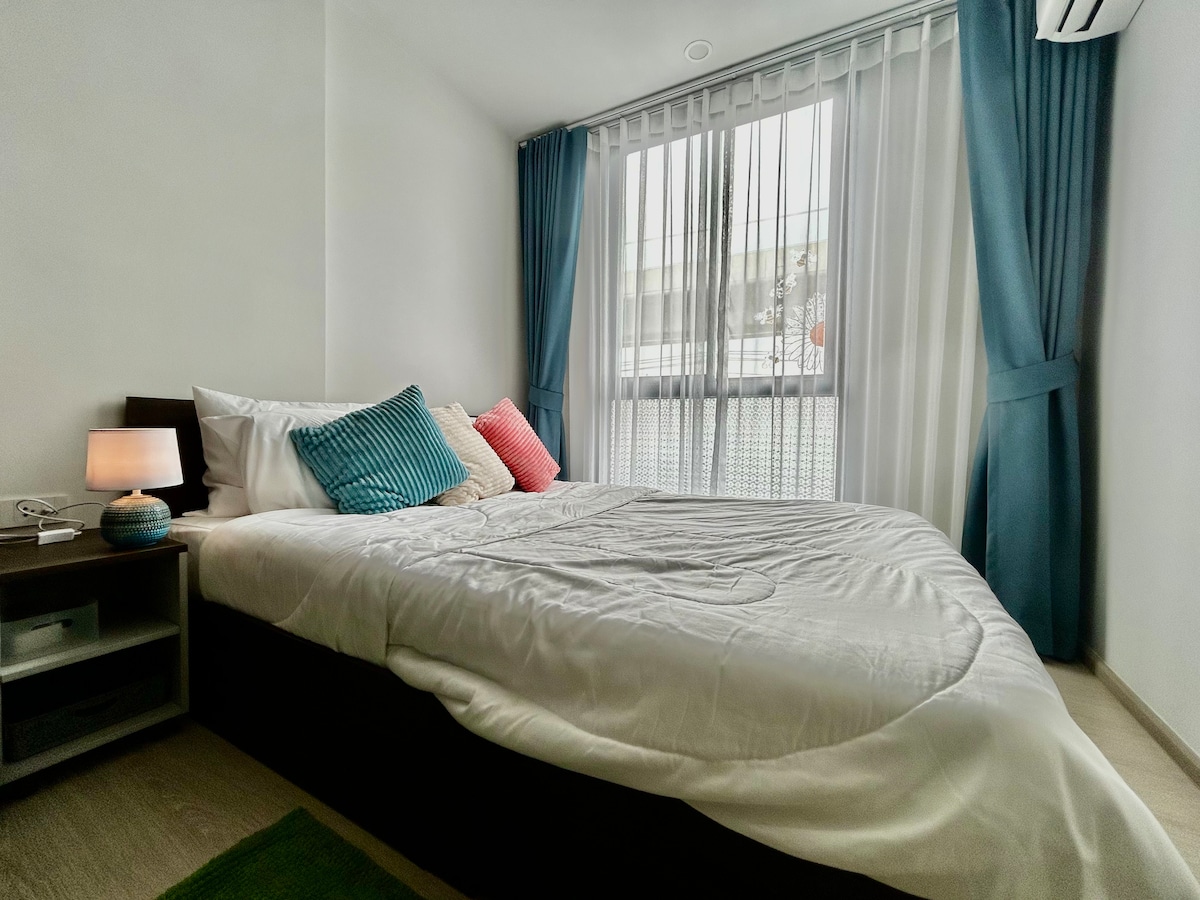 Welcome to our contemporary studio in Rangsit, Pathumthani. It's about 10 km to Don Mueang Airport, perfect for travelers. Featuring a cozy queen bed, a bathroom, and kitchenette, it ensures a stress-free journey to catch your flight. With convenient access to both the airport and nearby attractions, it's your ideal affordablt home near Bangkok. Book now for a comfortable and stylish stay!