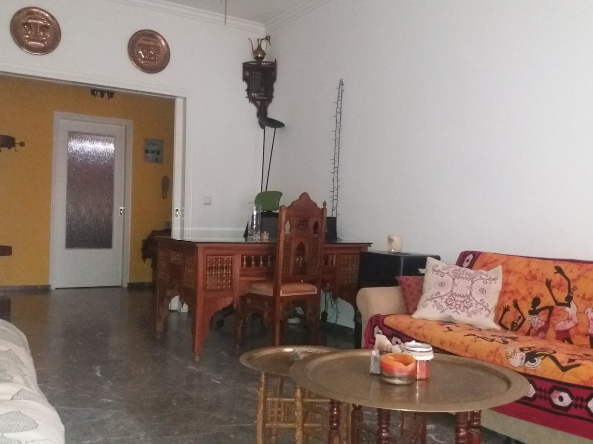 La habitación se encuentra en un departamento en la planta superior con un jardín en la azotea, con vistas a Ag. Dionysiou y vistas al mar. Cuenta con su propio baño y puerta principal, a través de la cual está aislada del resto de los espacios. Tiene dos puertas de balcón,con doble cristal,que hacen de una gran terraza/pérgola de unos 35 m2 con iluminación, bancos, sillas y mesas, toldo eléctrico, barbacoa. Hay un calentador de agua solar y eléctrico. A solo 08'a pie desde el centro y 05' desde KTEL/OSE.