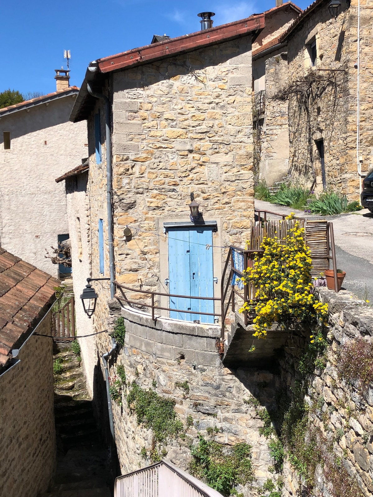 This house is a tiny house similar to a boat, in the heart of a small medieval village, overlooking the valley of the Tarn and Jonte. Completely renovated with love, this small sunny house on three floors will certainly satisfy your desires of calm, travel, nature and originality. Everything has been made or decorated from recycling. Moreover, 5 minutes walk, the owner has a flea market thrift very original, like the house.!