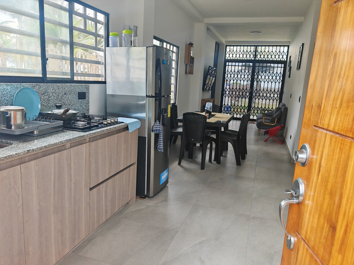 Moderna y amplia casa de playa con todos los servicios ubicada en conjunto privado vía a Cojimies. 3 dormitorios: cada uno cuenta con 1 cama queen size, 1 sofa cama, baño privado y aire acondicionado. Amplio comedor y sala, TV en la sala, internet rápido, cocina full equipada, 3,5 baños, agua caliente, piscina privada, amplio jardín y a 60mts de la playa. Ubicada a 4 horas de Quito en conjunto privado.