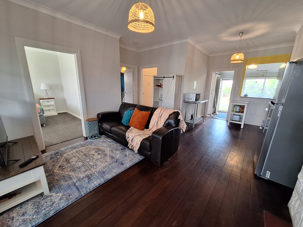Acogedor refugio junto a la playa. Nuestro apartamento estudio recién reformado está a pocos pasos del mar. Decorado con un estilo costero fresco, esta acogedora escapada es ideal para parejas o una escala en tu viaje por el suroeste. Con vistas al mar desde todas las ventanas, podrás relajarte en el banco Marri con una bebida y contemplar la puesta de sol sobre el mar. Disfruta de un desayuno gratuito con cereales, pan y huevos. Se proporcionan toallas de playa y encontrarás una barbacoa y cómodos asientos en el patio.
