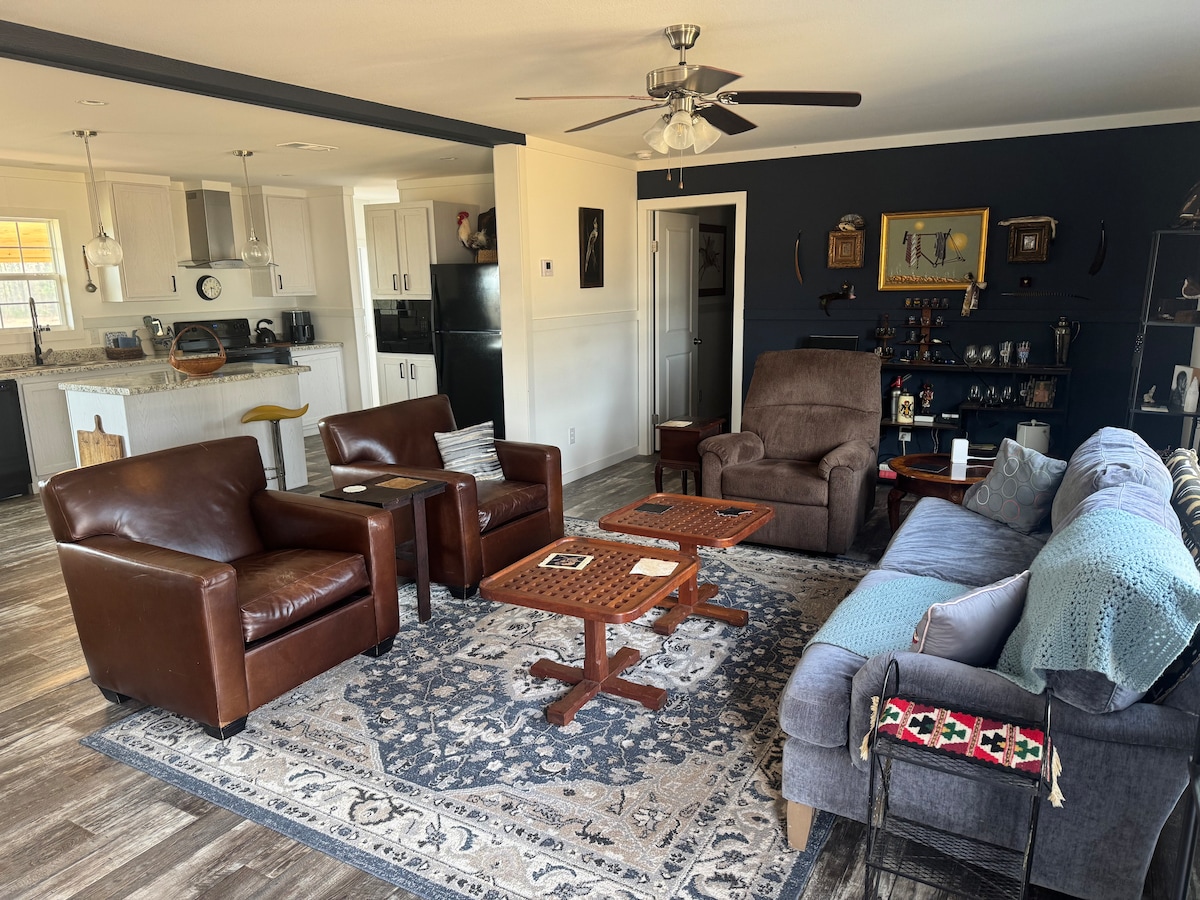 Get away from it all when you stay under the stars. This very spacious and newly renovated modular home awaits up to 8 guests looking to get away from the hustle and bustle. Chill out on the oversized deck. Beautiful spacious kitchen equipped for a large family. Minutes away from Otter Creek Farm & Distillery, Oak Meadows Wedding Venue, Talladega Speedway, Silver Lakes Golf, JSU, Neely Henry Lake, Coosa River, 90 minutes from ATL 60 minutes to B'ham. 20 minutes to Anniston or Gadsden.