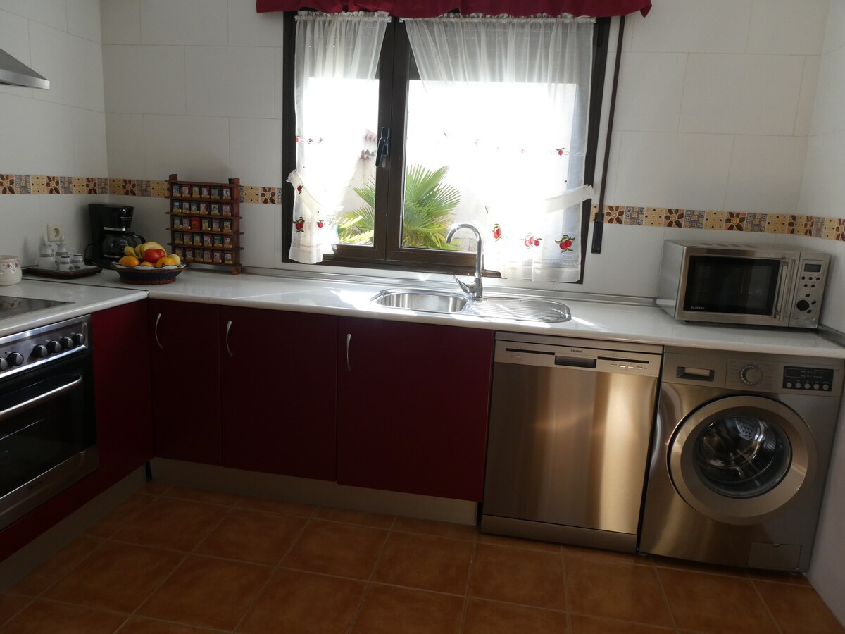 Casa de campo con piscina privada. Jardines y zonas de césped con árboles de sombra. Cuatro habitaciones, cocina totalmente equipada, un gran salón comedor y dos baños. En el exterior dos porches, uno de ellos con sofás y otro con barbacoa de obra y mesa para comer al aire libre. La casa de Blas es el lugar ideal para descansar y relajarse con toda la familia. La propiedad está completamente vallada.
