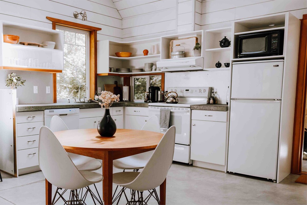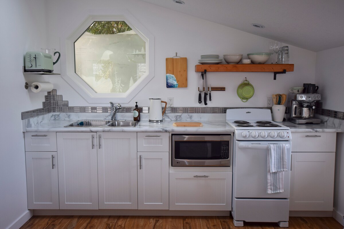 Recarga las pilas y relájate en este alojamiento tranquilo y sostenible. Camina hasta la playa, a cenar, al teatro o siéntate y relájate en el jardín de inspiración asiática. Ubicada en el corazón del casco antiguo, esta casa de carruajes privada, suite de segundo piso, ofrece una cocina completa y una zona de estar exterior. Con vistas al mar y al patio, puedes despertarte con el amanecer. Excelente para caminar: Kin Beach, el teatro Chemainus y muchas tiendas y restaurantes están a solo una manzana o dos.