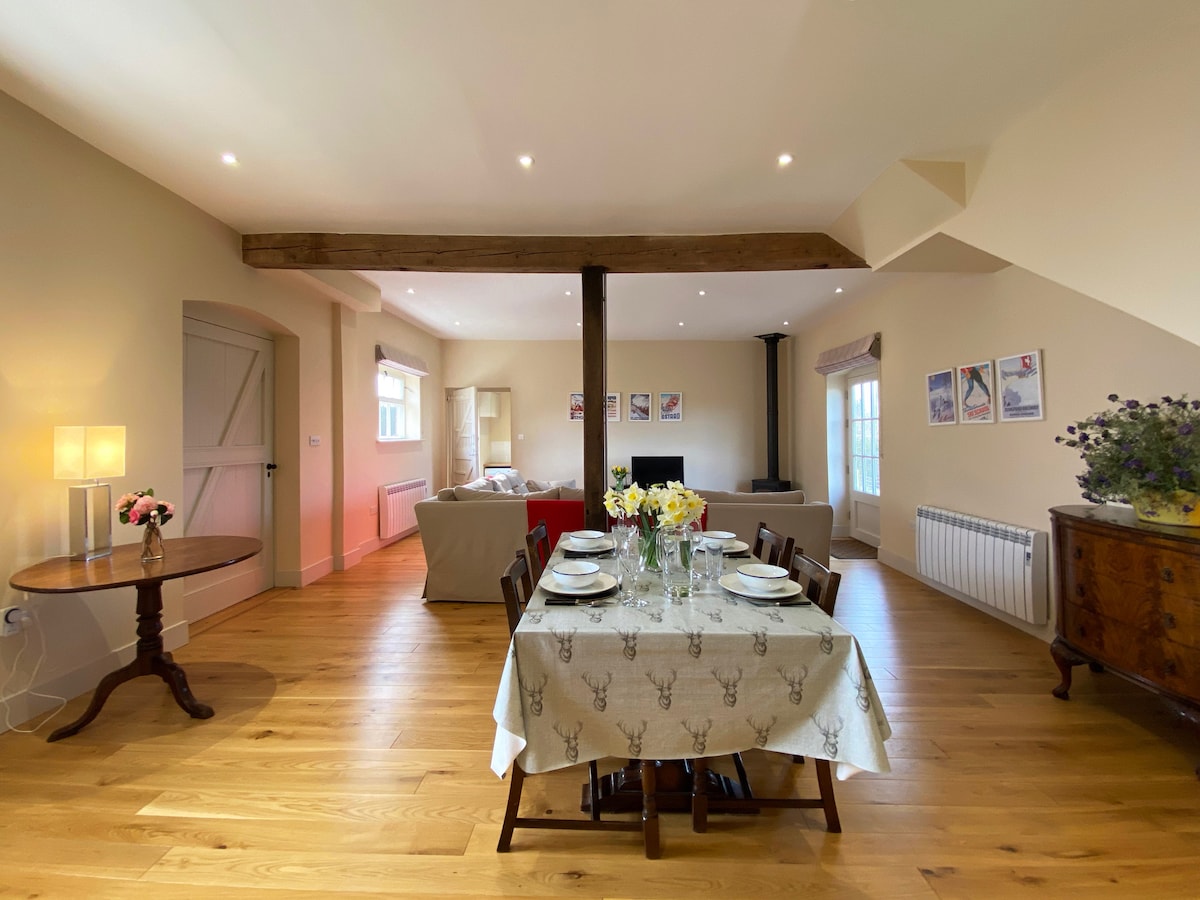 Hermoso granero para descansar con jacuzzi y opciones para ~ tratamientos de spa/masajes/tratamientos faciales ~ chef privado ~ pilates, yoga, zumba Ideal para parejas, familias o grupos en los terrenos de la histórica Oulton Smithy. Cerca del circuito de carreras de Oulton Park, en la bonita campiña de Cheshire. Hermosos paseos por el bosque y pubs rurales en los alrededores. El granero reconvertido se encuentra separado de la herrería y cuenta con entrada propia, estacionamiento seguro y una impresionante bañera de hidromasaje privada. Dispone de dos dormitorios y dos baños en suite. Detalles de lujo en todo el espacio.