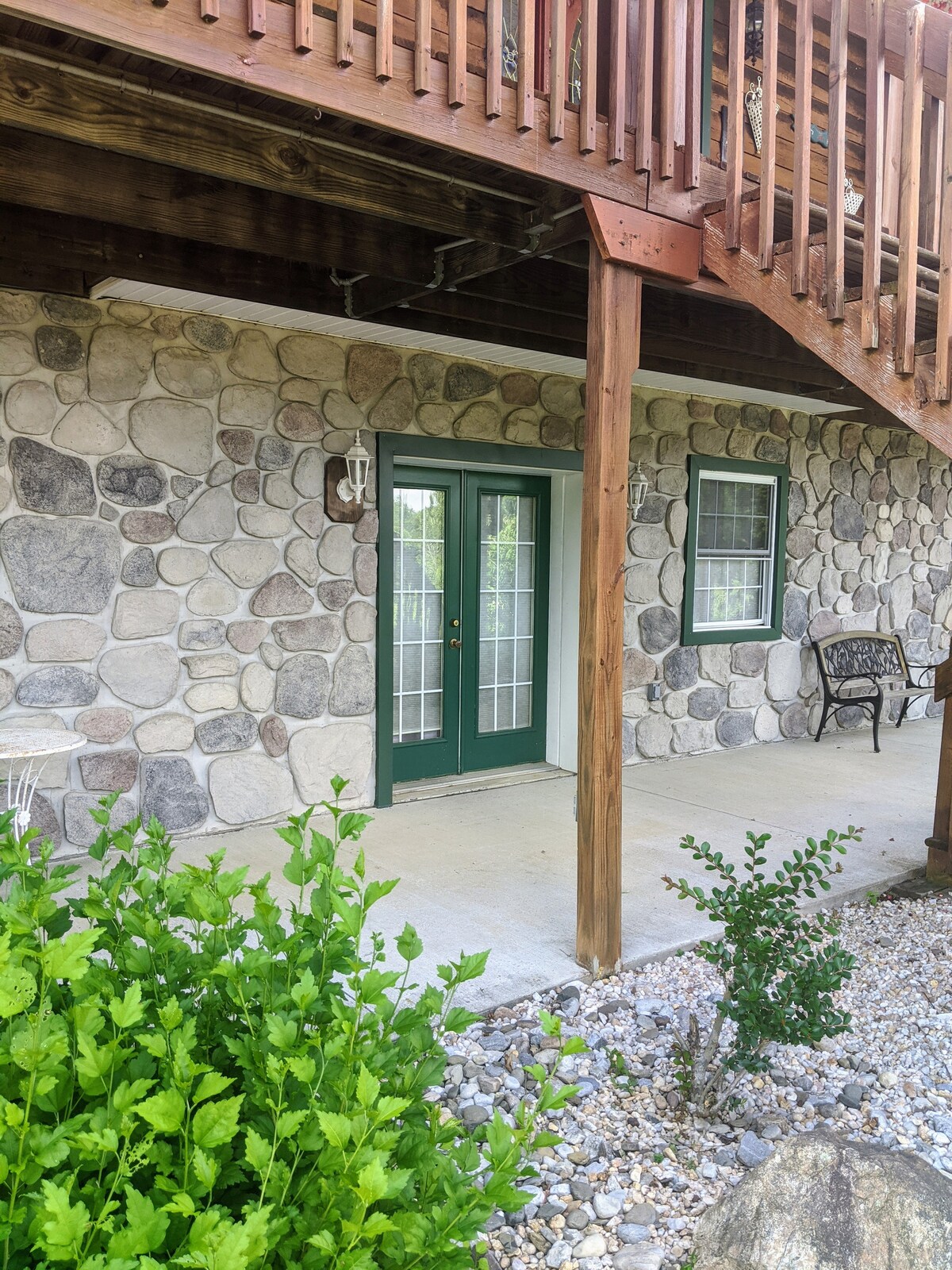 Acogedora suite con entrada independiente adjunta a la casa principal en un pueblo de cabañas de madera. Cocina completa, comedor, estufa de leña, cómoda cama tamaño queen, vestidor, juegos, 100 películas. Ducha a ras del suelo y asiento incorporado. Cuarto de lavado con puerta a la zona de terraza, mesas de bistró, chimenea. La sala de estar abovedada tiene un sofá cama para una persona, TV [ROKU, You Tube TV, HULU, Netflix, Amazon, Disney], reproductor de Blu-Ray y Google Nest Mini. Disfruta de artículos de desayuno como huevos frescos, zumo, leche, pan, café, té y nuestra pizzelle casera.