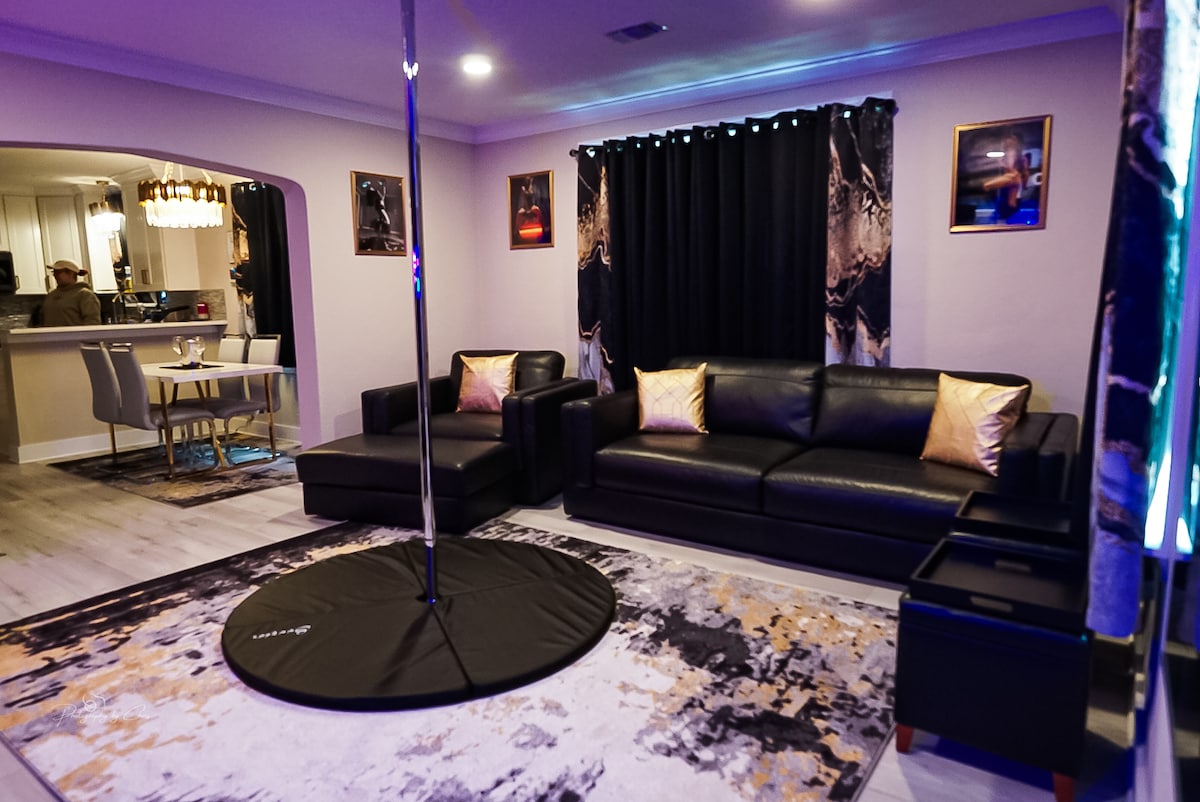 Este alojamiento único tiene personalidad propia. Una zona limpia, segura y sin prejuicios para reconectar con tu pareja. Aquí no hay habitaciones compartidas, disfruta de una casa entera dedicada a cumplir todas las fantasías y deseos salvajes que desearías poder realizar pero nunca tuviste la oportunidad. Sé tan suave, dulce o irrespetuoso como quieras, dentro de este maravilloso país de las maravillas perverso, el cielo es el límite. ¡Disfruta de las muchas habitaciones temáticas y juguetes diferentes que tenemos para ofrecer o siéntete libre de traer tus propios artículos!