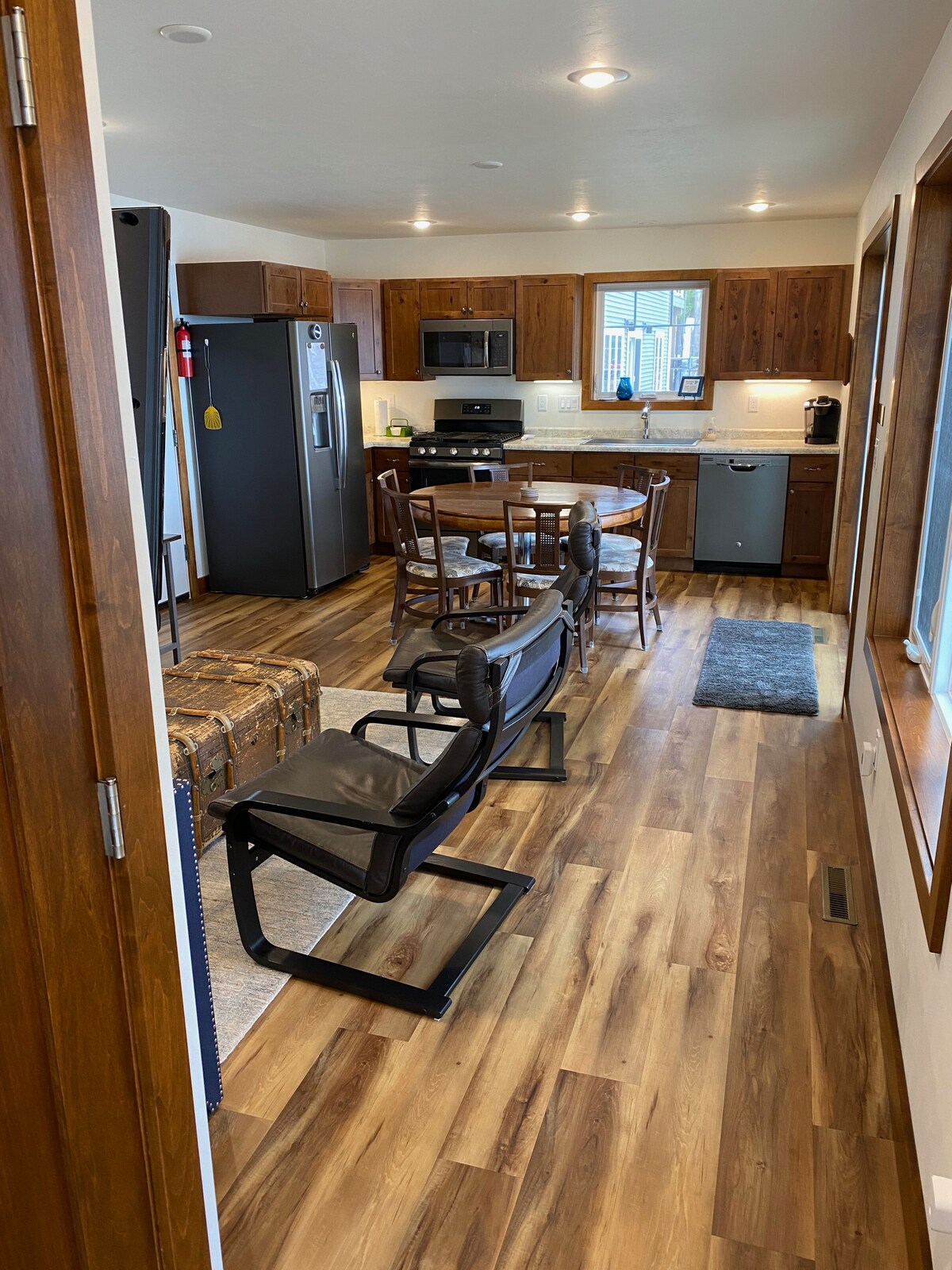 Entra en tu acogedor y soleado refugio, que recuerda a tu cafetería favorita. Cuidadosamente diseñado para combinar funcionalidad, comodidad y estilo, este espacio seguramente se convertirá en tu querido hogar lejos de casa. Situado a pocos minutos del centro de Green Bay, las principales carreteras y atracciones para familias, este moderno refugio atiende tanto a viajeros ocasionales como a viajeros de negocios. ¡Experimenta un verdadero sentido de pertenencia con una estancia diseñada para fomentar la conexión, la creatividad, la conciencia y la comunidad!