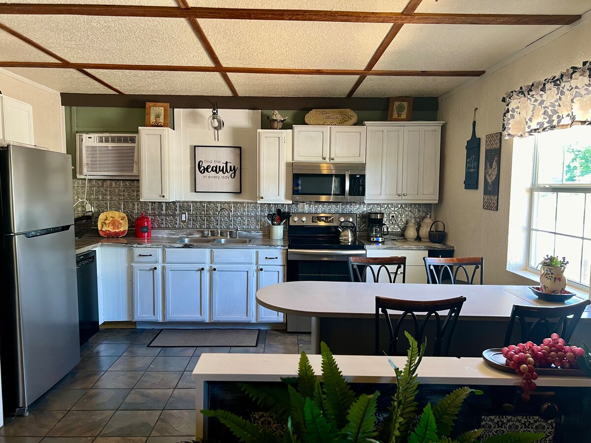 ¿Por qué elegir un hotel cuando puedes disfrutar de una casa entera? Bienvenido a esta casa de campo recientemente renovada, que cuenta con casi 100 años de encanto. La casa se encuentra a pocas manzanas de la histórica Ruta 66 con fácil acceso a la I-44 y Joplin, MO. Es una excelente ubicación para trabajar o jugar. Este pequeño espacio cuenta con todo lo necesario para que te sientas como en casa. Una cocina totalmente equipada, espacio de trabajo dedicado, internet de alta velocidad, televisores en la sala de estar y el dormitorio. El diseño abierto proporciona una sensación espaciosa pero acogedora.