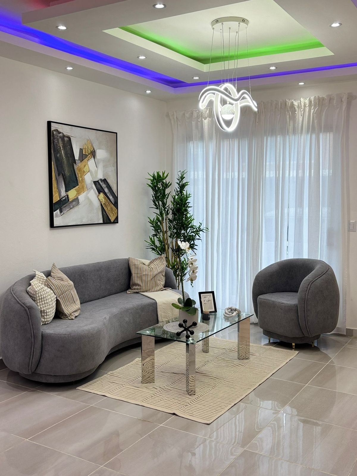 Disfruta de este moderno penthouse totalmente equipado ubicado en una zona segura y céntrica, a solo 5 minutos de Playa Los Almendros y del centro de Peravia (Baní). El departamento cuenta con 3 dormitorios, 4 baños, aire acondicionado, amplios armarios, estacionamiento para 2 vehículos y comodidades que incluyen un gimnasio, área de juegos para niños y espacio para eventos en el quinto piso. La mesa de billar es solo para adultos. Servicios opcionales: alquiler de vehículos y traslados al aeropuerto. Sin ascensor.
