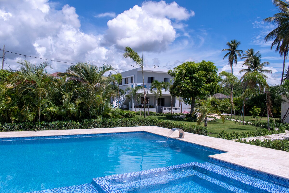 PROPIEDA dentro de 5300 métro cuadrado con frutales ,palmas ,coco piscina adulto ,piscina niños salon de jardin comedor de jardin BBQ ,wifi télévision cancha de volleyball de playa cancha para bolas 4 habitaciones spaciosa de doble cama con aire ,abanico nevera 2 habitaciones de 1 cama todas con baño privado ,3 sofa cama capacida total 20 adultos ,playa linda a 2 minutos acceso por un callejon zona résidencial muy tranquilo cocina équipada ,névera estufa micro ondo liquadora parquéo cubierto