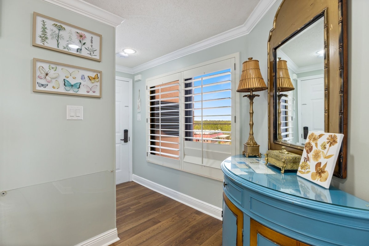 Shabby chic y moderno, costero y acogedor. Lujoso condominio en el piso sexto en la Torre 3. ¡FRENTE A LA PLAYA, VISTA INCREÍBLE, BALCÓN EXTRAGRANDE! *Condominio de 2 dormitorios/2 baños ~capacidad para 8 personas * Camas de espuma viscoelástica en el dormitorio principal y en el segundo. Sofá cama tamaño queen. * Playa privada. *Cocina de chef totalmente abastecida. *Televisores inteligentes * Silla alta, mochila/juego, juegos y más. *Acceso al armario/equipo de playa