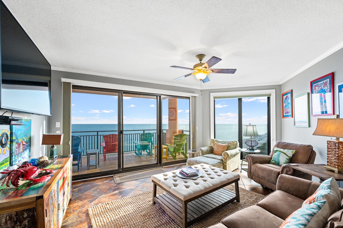 Bring the whole family together in this beautifully designed & thoughfull laid out beachfront condo. Offering spectacular views, multiple generous living areas & comfort for every generation. With room to gather & space to unwind, this home is perfect for grandparents, parents & kids or friend groups to share unforgettable beach days to enjoy together without feeling crowded. With panoramic views from floor-to-ceiling windows, this spacious condo offers breathtaking scenery sunrise to sunset.