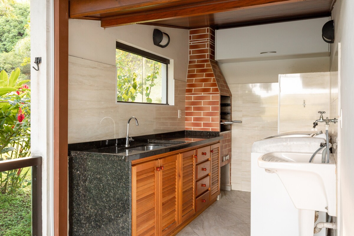 Escápate de la rutina y relájate en un chalet privado rodeado de naturaleza, perfecto para parejas💑. Disfruta de un exclusivo jacuzzi climatizado, cama tamaño king, aire acondicionado y zona de barbacoa, todo a solo 500 metros de la playa. Ubicación increíble en el sur de Ilhabela: cerca de las playas más hermosas, restaurantes y mercado, pero con la tranquilidad de un refugio en el bosque 🌿🌊 El chalet cuenta con: - 1 habitación - 2 baños. • Cocina privada. • Wi-Fi • TV inteligente • Jacuzzi para relajarse. • Parrilla privada