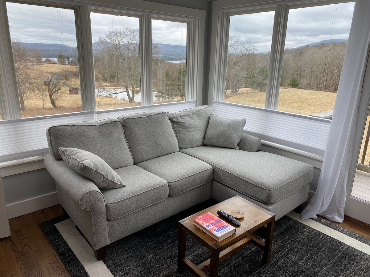 Casa de huéspedes privada situada en más de 250 acres, con cocina gourmet totalmente equipada y excelentes vistas a campos tranquilos y al valle. Estanque con trampolín para nadar en verano. La colina gigante para trineos es una de las favoritas de niños y adultos por igual. Senderos en la propiedad para practicar senderismo, esquí de fondo y raquetas de nieve. A 15 minutos de Woodstock VT. A 45 minutos de Killington, Pico y Okemo. Hay excelentes restaurantes y tiendas cerca. Hannover y Norwich VT a 20 minutos. Ten en cuenta que no es accesible para personas con discapacidad.