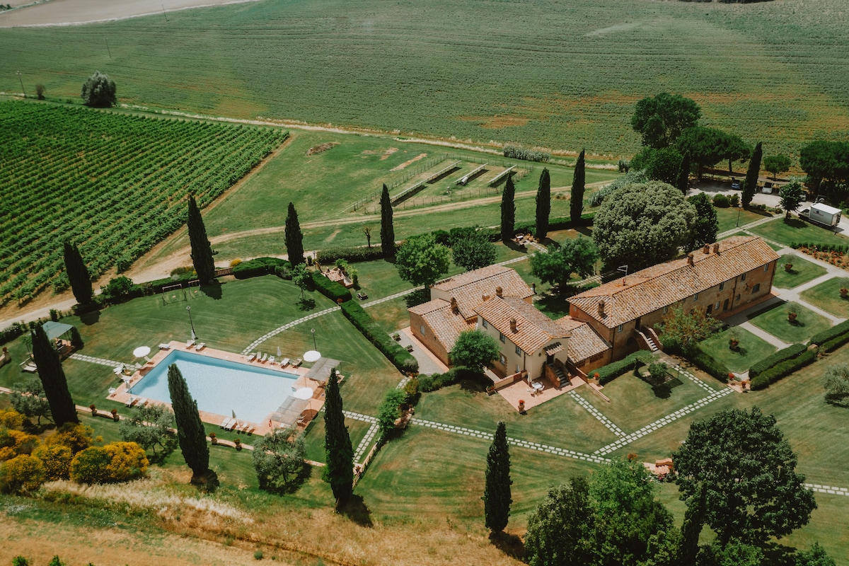 Via della Stella es un encantador agriturismo con una superficie de 530m², dividida en nueve apartamentos independientes. Cada apartamento tiene su propio salón, cocina y uno o más baños y dormitorios. El agriturismo dispone de una maravillosa piscina panorámica. Su magnífica posición con vistas a las colinas que se dirigen a Montepulciano crean un ambiente sereno. La propiedad ha sido cuidadosamente decorado en estilo rural toscano. Se ofrecen actividades como catas de vino y clases de cocina.