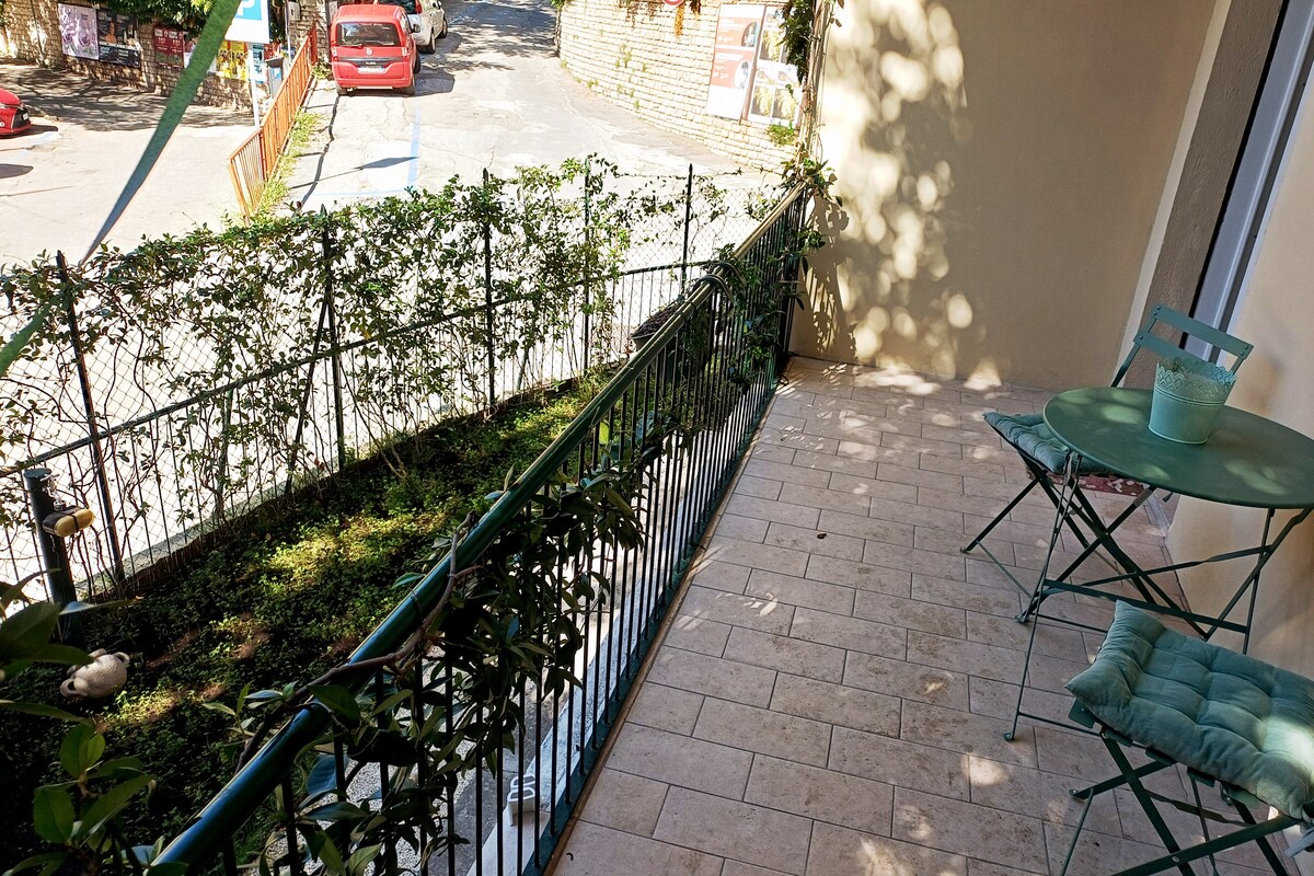 Cozy garden apartment near city escalators