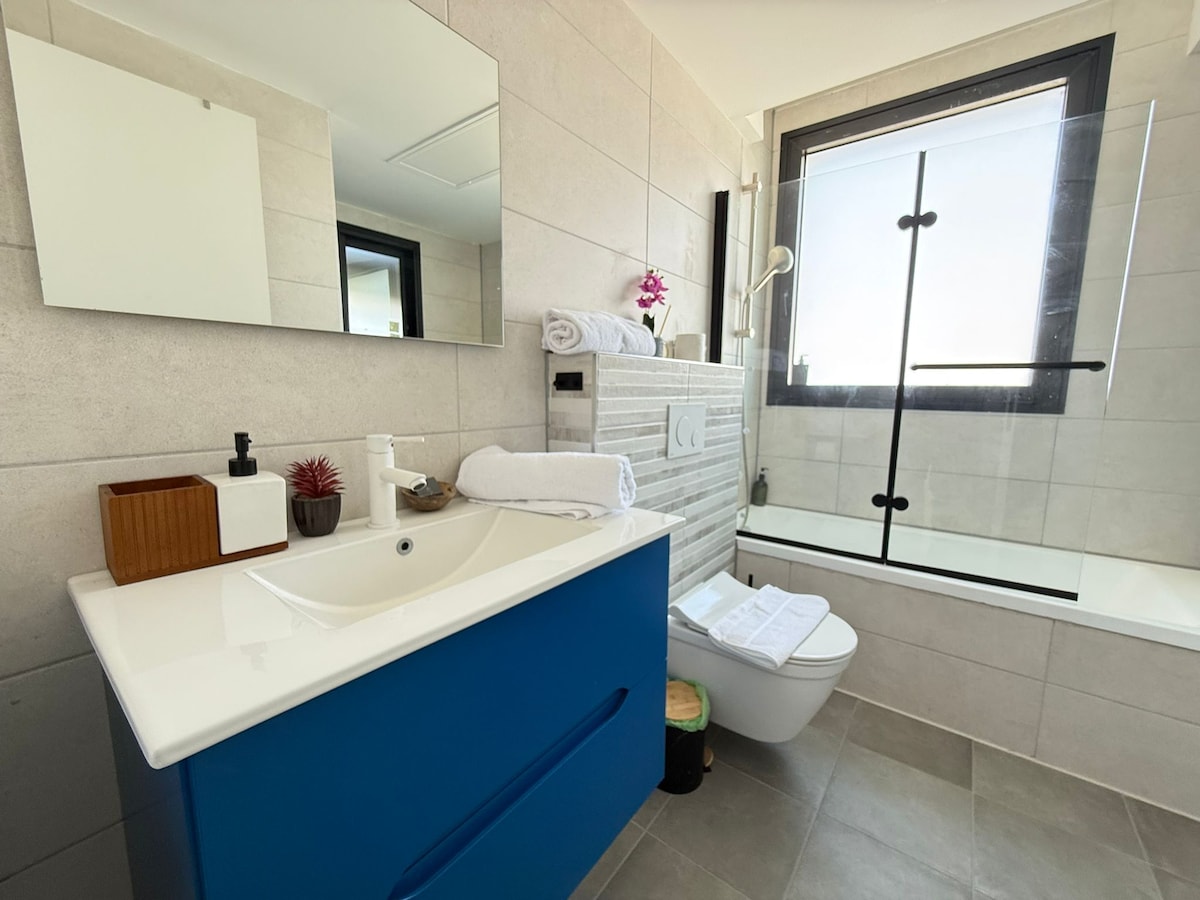 Departamento increíble🏡 ¡Nuevo! ¡Muy meticuloso y decorado! ¡Totalmente amueblado y equipado! El departamento está ubicado en la zona más céntrica y buena de Givat Shmuel, justo encima del centro comercial y parque de la colina central y a poca distancia a pie de cualquier lugar de Givat Shmuel.🏡 El departamento está en un edificio tranquilo con vistas a una vista espectacular.🌳 ¡Habitación enorme con nueva cama doble king! Cocina kosher y nueva👨🍳 Nuevo televisor Samsung de 65 pulgadas con Yes Disney y Netflix🍿 ¡Balcón y mimos muebles de jardín! ¡Otro barco de ducha para una vista en el balcón! ¡Chimenea eléctrica!