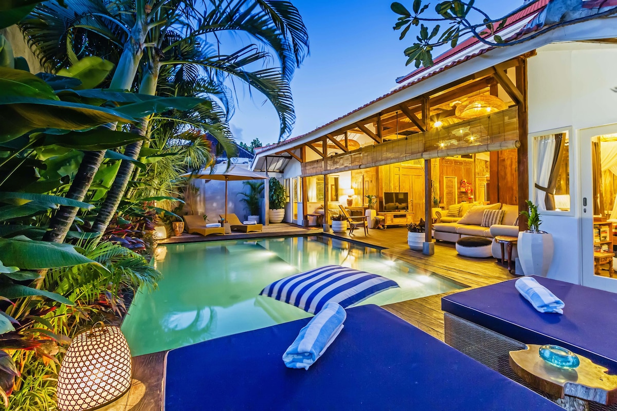 La villa se ubica en el corazón de la zona de Seminyak, a poca distancia a pie de restaurantes aclamados. A solo 20 minutos en coche del aeropuerto internacional de Bali y a 3 minutos a pie de la playa. Una piscina de entrenamiento de 11 x 4 metros, una sala de estar al aire libre, una sala de estar y comedor semi al aire libre, una cocina y un pabellón de relajación ubicado dentro de un jardín amurallado compacto. La villa está equipada con acceso a internet wifi y muchas otras consideraciones cuidadosas para la comodidad de los huéspedes.