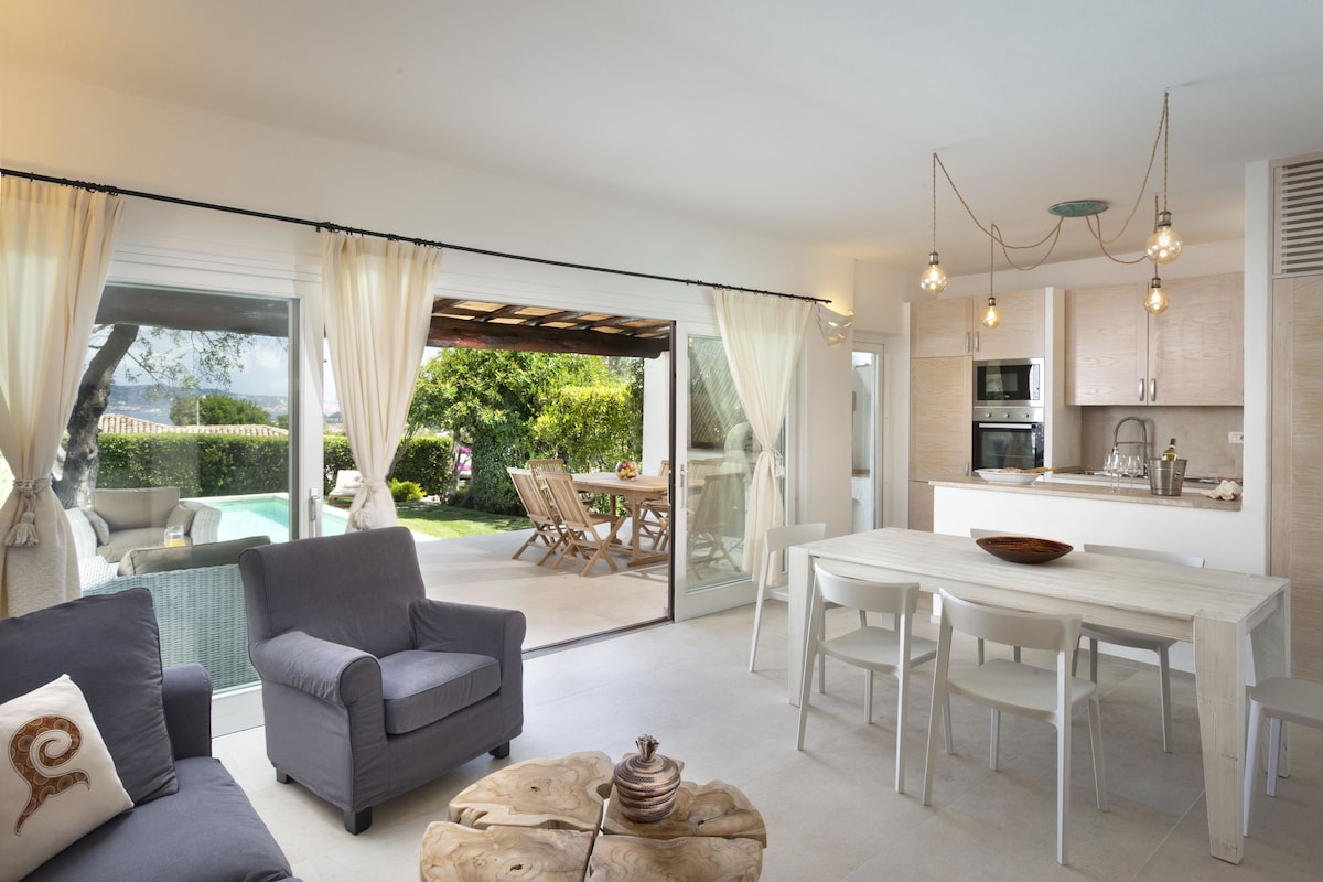 Esta pequeña villa moderna está rodeada de grandes ventanales que te permitirán sentirte totalmente inmerso en la nuez. El silencio es total y la privacidad es absoluta. Aquí encontrarás tranquilidad. Los huéspedes tendrán acceso a la piscina de uso exclusivo y a un espacio de estacionamiento privado. No estamos lejos de las playas más famosas de la Costa Esmeralda, a unos 5 minutos en coche de Porto Rotondo y a 25 de Porto Cervo. El aeropuerto de Olbia está a 15 minutos. La ubicación es genial.